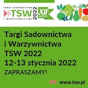 Targi Sadownictwa i Warzywnictwa TSW 2022 odbędą się w dniach 12-13 stycznia w Ptak Warszaw Expo w Nadarzynie k. Warszawy.