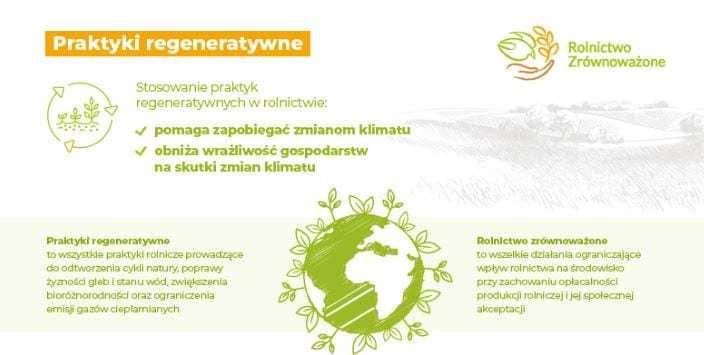 Praktyki regeneratywne to wszelkie działania rolników, które prowadzą do odtworzenia cykli natury, poprawy żywności gleb i stanu wód, zwiększenia bioróżnorodności oraz ograniczenia emisji gazów cieplarnianych. Stanową one integralną część modelu rolnictwa zrównoważonego, które stawia sobie za cel ograniczanie wpływu rolnictwa na środowisko, przy zachowaniu opłacalności produkcji rolniczej i jednoczesnej akceptacji społecznej.