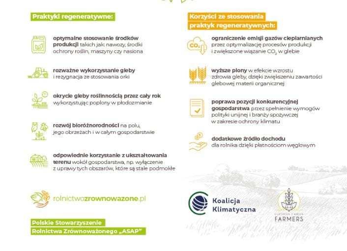 Polskie Stowarzyszenie Rolnictwa Zrównoważonego „ASAP” wspólnie z ekspertami z Koalicji Klimatycznej oraz European Carbon Farmers opublikowało listę praktyk regeneratywnych, które pomagają zapobiegać zmianom klimatu oraz obniżają wrażliwość gospodarstw na skutki globalnego ocieplenia.
