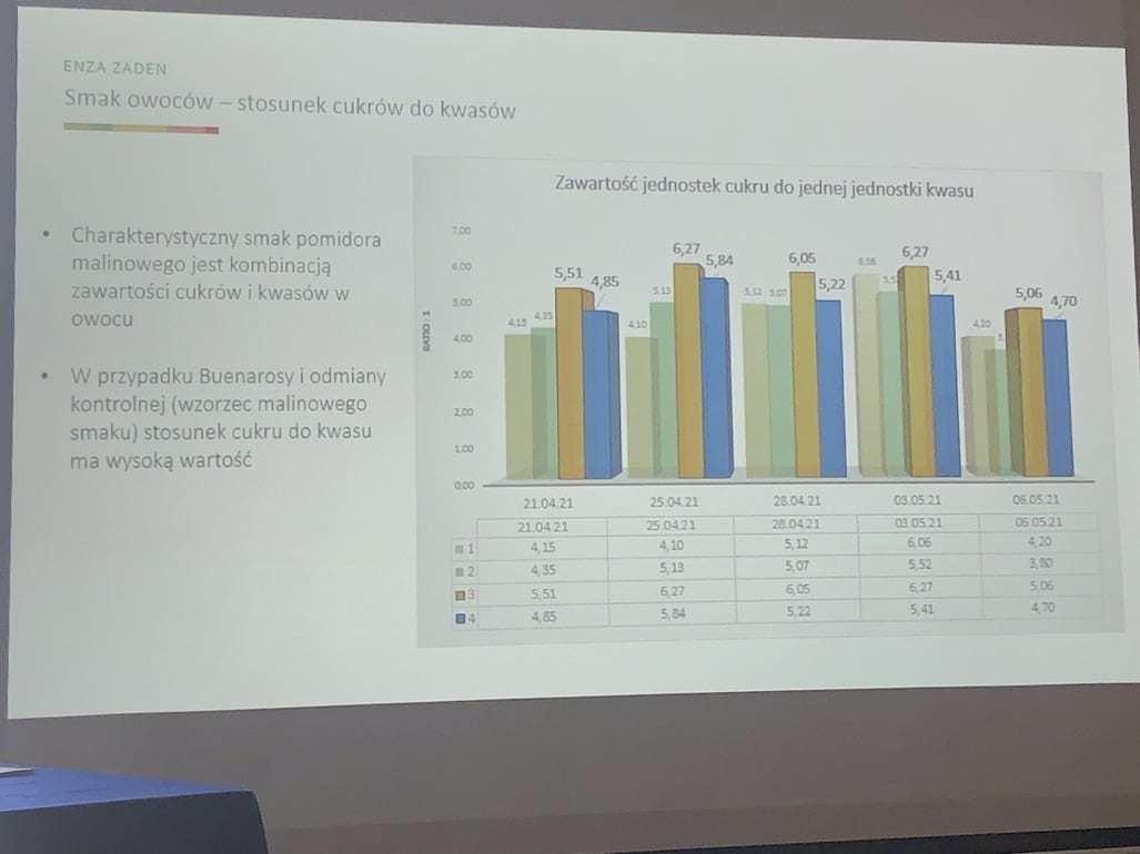 Szczegółową charakterystykę nowej odmiany Buenarosa pomidora malinowego omówił Krzysztof Floras z firmy Enza Zaden. Pomidor malinowy Bueanora F1 był testowany przez trzy lata na wielu podkładkach. Jest to odmiana, która wszędzie pokazuje swoją siłę i wysoki potencjał.
