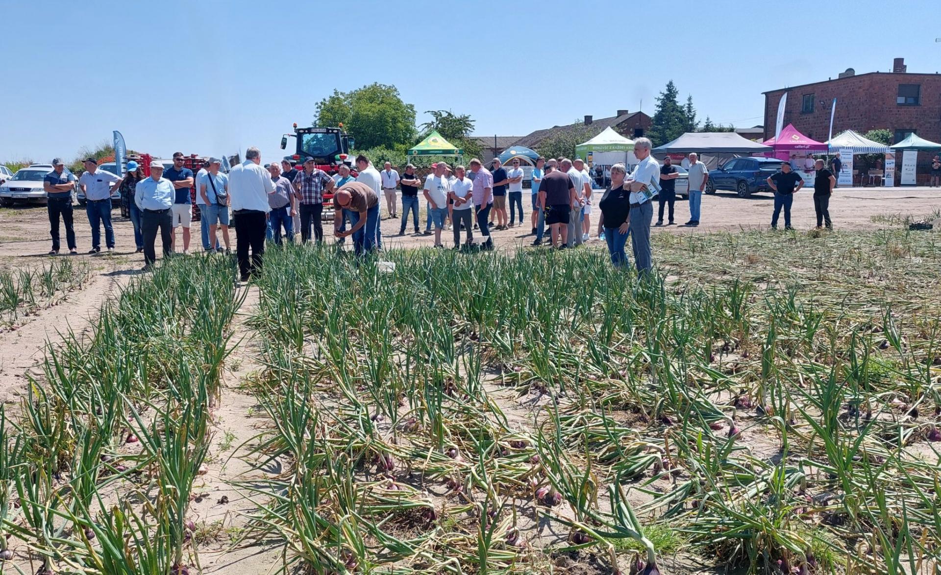 Dariusz Kacprzak reprezentujący firmę PNOS Ożarów Mazowiecki, dystrybutora hodowli Maraldi Sementi, Agri oraz MoravoSeed przybliżył charakterystykę jedenastu odmian cebuli zimującej znajdujących się w kolekcji na polu w miejscowości Słomczyce Huby.