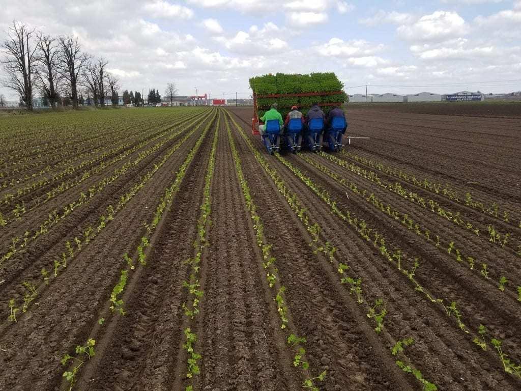 Sadzenie roślin, odbywa się czterorzędową sadzarką Ferrari. Rozsada jest sadzona w zagęszczeniu ok. 70 tys.szt./ha. w rozstawie 65 cm x 21,5 cm.