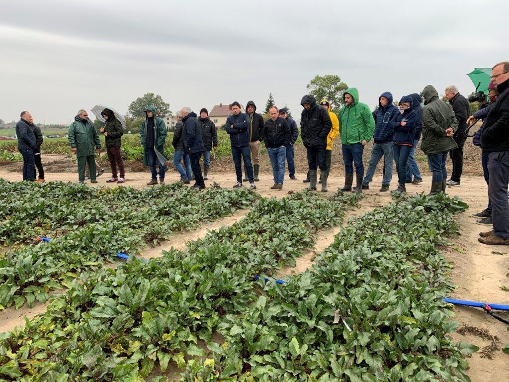 Gospodarz spotkania Cezary Olejniczak oprócz buraka ćwikłowego uprawia pomidora i ogórka gruntowego dla firmy Maspex. Siedziba tego zakładu znajduje się w firmie Agros Nova w Łowiczu, jest on członkiem Zrzeszenia Plantatorów Owoców i Warzyw w Łowiczu. W przypadku buraka ćwikłowego uprawia tylko odmianę Monty F1, ponieważ takie są wymagania odbiorcy. W tym roku ze względu na suszę niezbędne było nawadnianie. Na polu zastosowano 3 sposoby nawadniania – kroplowe, za pomocą zraszaczy oraz deszczownią szpulową. W uprawie wykorzystano nawozy z firmy Yara. Producent był zadowolony z uzyskanych efektów. W przypadku ogórka udało mu się zebrać ok. 130 t/ha, a w buraku liczy, że plony przekroczą 120 t/ha.