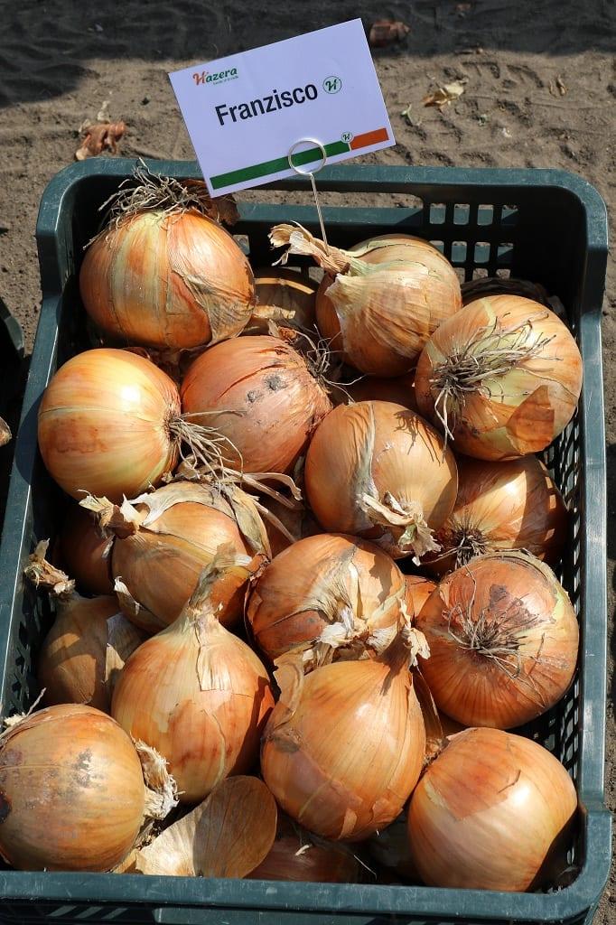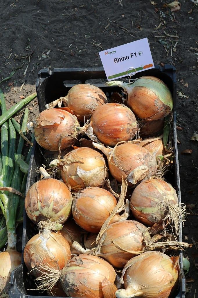 Piotr Manista scharakteryzował zaprezentowane odmiany oraz wspomniał o innych z oferty firmy Hazera. Polecał w szczególności odmianę Rhino F1 – w typie amerykańskim, z silnym systemem korzeniowym, która może być przechowywana do lutego. Ma ona duży potencjał plonotwórczy i na nawadnianych plantacjach w tym roku osiągała średnicę powyżej 10 cm. Ta odmiana nie ma tendencji do wybijania w pędy kwiatostanowe, ale należy ją wysiewać po 10 kwietnia. Kolejna odmiana z oferty Hazera – Dormo F1 – przeznaczona jest do bardzo długiego przechowywania – nawet do czerwca. Jest to odmiana w typie Rijnsburger, jest plenna, ale nie tworzy tak wielkich główek, jak odmiany w typie amerykańskim czy hiszpańskim. Jej zaletą jest m.in. twardość, wyrównanie i możliwość długiego przechowania. Spośród innych Rijnsburgerów prelegent polecał np. Centro F1, a także Firmo F1, a także nową, bardzo wczesną – Fasto F1, która wcześnie załamuje szczypior i nadaje się do pierwszej sprzedaży z zaschniętą łuską. Prelegent podkreślał, że warto zwrócić uwagę na formę nasion. Polecał nasiona zaprawiane zaprawą Mundial. Nasiona takie są droższe, ale do zaprawiania wybierane są wyselekcjonowane nasiona, o wysokiej zdolności kiełkowania, a zaprawa ta chroni siewki nie tylko przed śmietką, ale również przed pierwszym atakiem wciornastków.