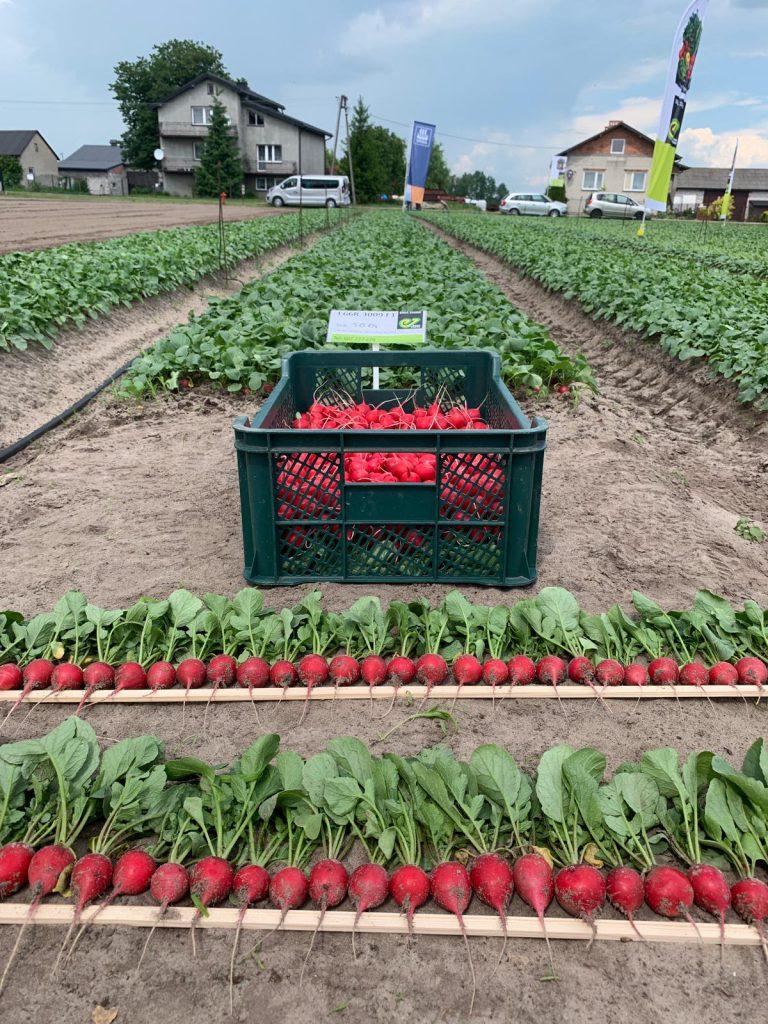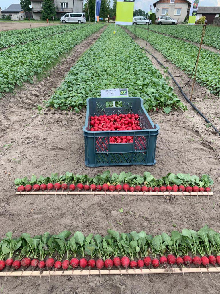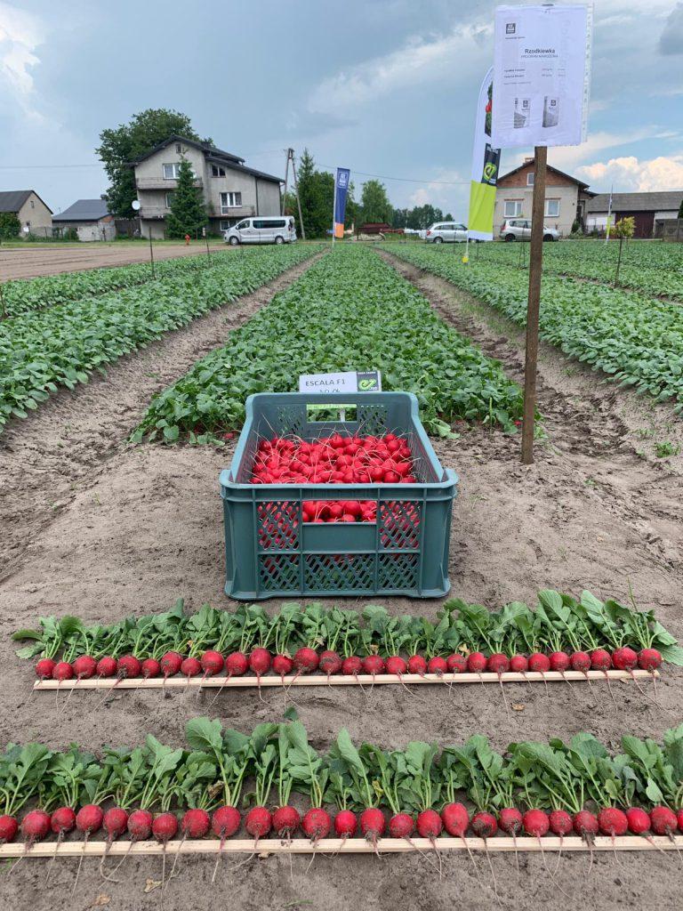 Prowadzący spotkanie Łukasz Bogaczyk z firmy Enza Zaden zwracał uwagę, że starano się pokazać te odmiany w różnych fazach wzrostu. Można było zobaczyć te odmiany zarówno tuż po wschodach (z siewu 22 i 26 maja), jak i wyrośnięte siewki (z siewu 18 maja). Pokazane były te odmiany z siewu z 30 kwietnia – już nieco po terminie zbioru oraz z terminu oraz z 4 maja – w idealnej fazie zbiorczej. Wszystkie prezentowane odmiany cechowały się dużym wyrównaniem, kulistymi intensywnie czerwonymi zgrubieniami korzeniowymi oraz krótkimi liśćmi.