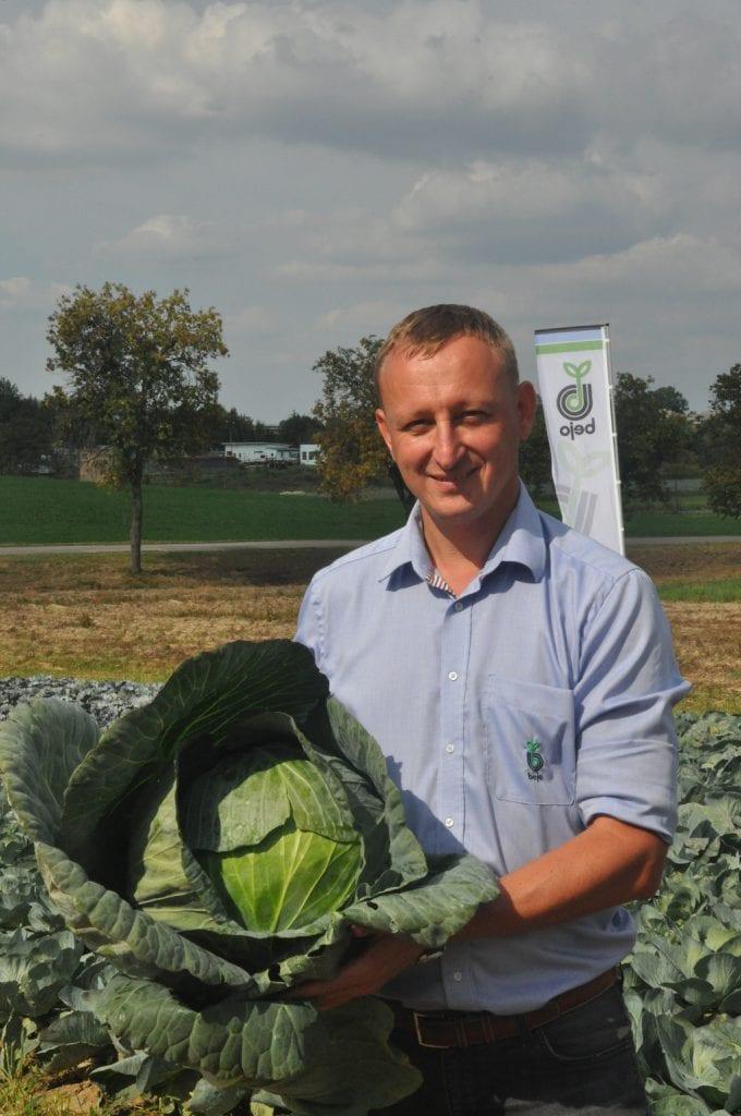 Hubert Tabor, przedstawicieli firmy HM.Clause, w gospodarstwie Rafała Maja w Ciszowicach prezentował odmianę kapusty głowiastej białej Decurion F1 o ok. 130-dniowym okresie wegetacji, tworzącą główki o masie 2,5-3,5 kg, osadzone na wysokim głąbie.