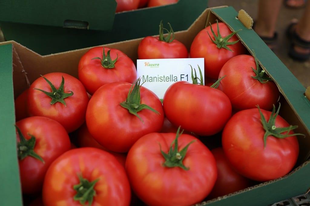 Małgorzata Zadura z firmy Hazera, Menadżer ds. Rozwoju Produktów, zaprezentowała kolekcję odmian pomidora malinowego, które doskonale sprawdzają się w uprawie w tunelach foliowych. Producenci zwrócili szczególną uwagę na odmianę Manistalla F1 - nowość w portfolio firmy Hazera. Rośliny o silnym wigorze, tworzą plon porównywalny do plonu pomidora czerwonego wielkoowocowego. Wyrównany, lekko żebrowany owoc, o ciemnomalinowej barwie i błyszczącej skórce; bardzo smaczny, duży (250 - 300 g), o krótkiej i grubej szypułce - charakterystycznej dla tego pomidora. Rośliny tworzą regularne grona, nie tracąc wigoru nawet przy mocnym obciążeniu.