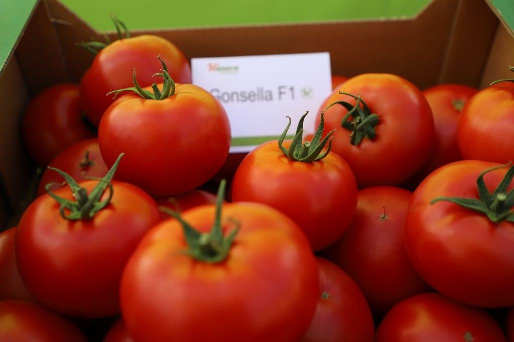W Borku producenci mogli zobaczyć produkcję pomidora nie tylko malinowego, ale również tradycyjnego, o czerwonych owocach. Z odmian średniowczesnych ciekawie prezentowały się odmiany Gonsella F1 (nowość w ofercie Hazery) oraz Belladona F1. Pierwszy z mieszańców tworzy wyrównane grona owocowe (6-8 gron), o wyrównanych ciemnoczerwonych (180-200 g), lekko żebrowanych i delikatnie spłaszczonych owocach. Nieco większe owoce (250-300 g) tworzy z kolei odmiana Belladona F1 - polecana do uprawy wiosennej, letniej i jesiennej na krótki cykl (do 5 gron). Odmiana ta jest tolerancyjna na niekorzystne warunki termiczne i świetlne.