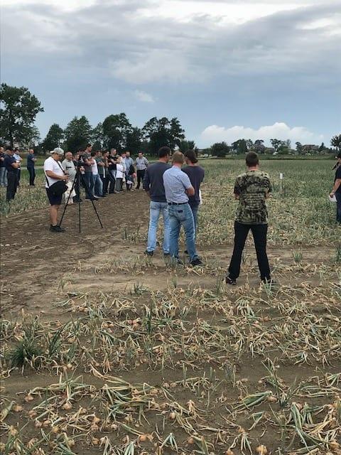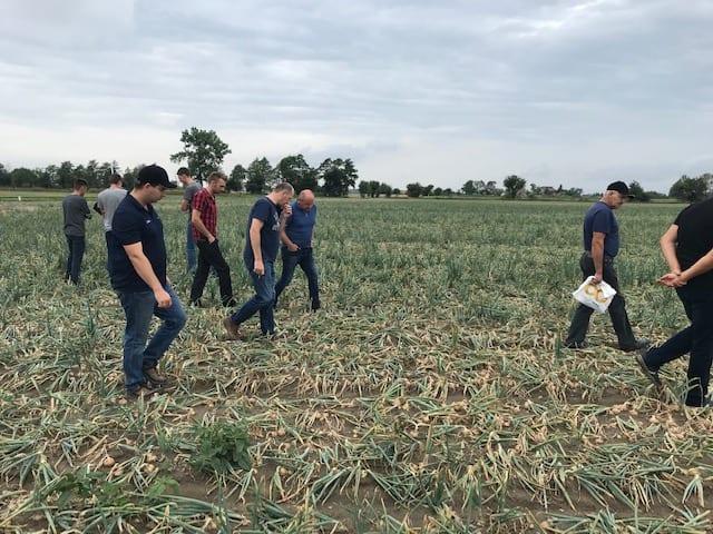 Na zakończenie spotkania cebulowego w Rozalinie, Wojciech Kopeć z firmy Yara Poland, poruszył temat nawożenia cebuli. Aplikacja nawozów w tym gospodarstwie odbyła się wyłącznie pogłównie. Pod koniec kwietnia zastosowano YaraMila Complex – nawóz bezchlorkowy, ponieważ zawiera on polifosforanową formę fosforu i, w odróżnieniu od wielu innych nawozów NPK, nie wymaga wymieszania z glebą. Przy tego typu nawożeniu niezbędna jest woda, która wpłucze składniki pokarmowe w głąb profilu glebowego skąd mogą być efektywnie pobrane. W przypadku braku opadów atmosferycznych pewność tą zapewnia możliwość nawadniania. Aplikacja nawozów azotowych ze względu na niską zawartość wapnia w glebie odbyła się przy pomocy saletr wapniowych - tzn. nawozów które zawierają w pełni rozpuszczalny w wodzie wapń – 22 maja zastosowano 250 kg/ha YaraLiva Tropicote, a 19 czerwca 160 kg/ha Uniki Calcium – saletry potasowo-wapniowej. Z uwagi na trudny sezon i, tak naprawdę walkę o szczypior, w celu regeneracji po uszkodzeniach herbicydowych zastosowano KristaLeaf Foto – nawóz o podwyższonej zawartości magnezu i żelaza. W celu pobudzenia do intensywnego wzrostu nawóz o zrównoważonym składzie – Kristalon Zielony. W okresie intensywnego wzrostu zgrubień cebulowych naprzemiennie nawozy o podwyższonej zawartości potasu Kristalon Czerwony oraz saletrę wapniową z koktajlem mikroelementowym (Calcinit + Mikromix). Z uwagi na niską zawartość wapnia w glebie, w fazie 6-7 liścia właściwego zaaplikowano YaraVita Brassitrel Pro – zapewniający długotrwałe odżywienie borem, manganem i molibdenem - informował W. Kopeć (Yara Poland).