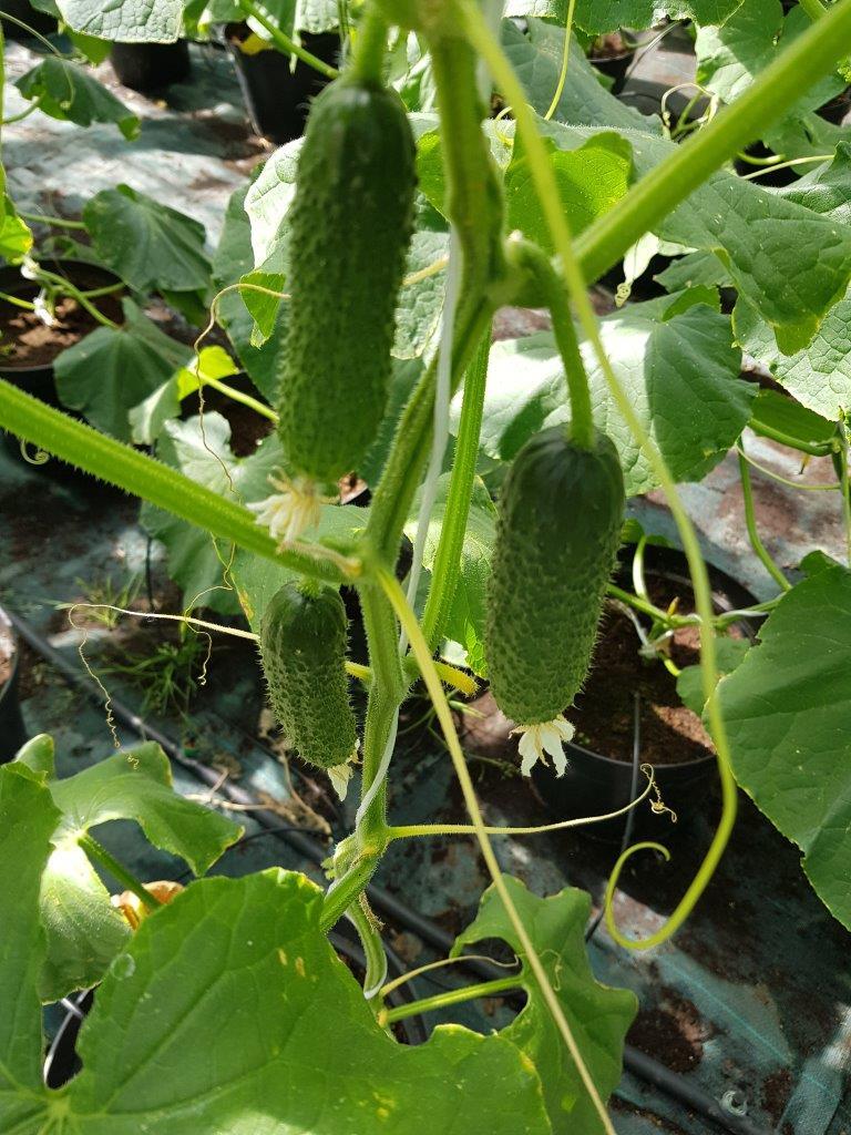 Nasiona ogórków wysiano 9 maja do tac wielokomorowych (96 komór), w podłoże Kronen do warzyw. Rozsadę wysadzono 1 i 3 czerwca do donic o pojemności 12 l. Rośliny w donicach ustawiono w szklarni 7 czerwca i podłączono system kroplowego nawadniania (sterownik Mono-Mix). Użyto podłoża kokosowego z domieszką Kronen do warzyw.