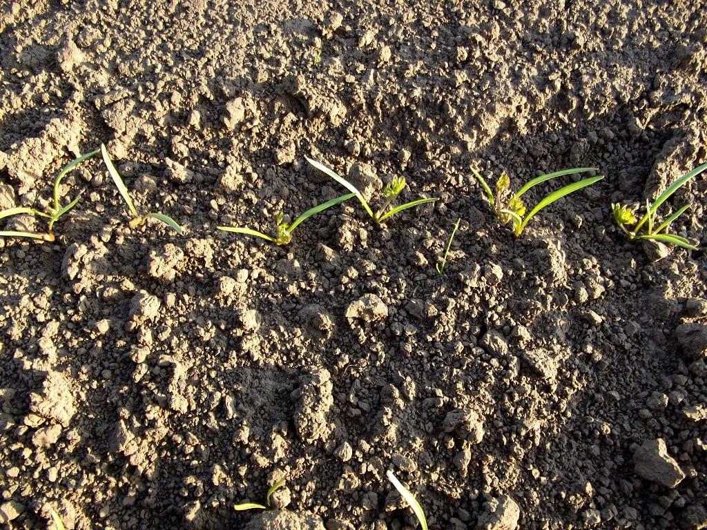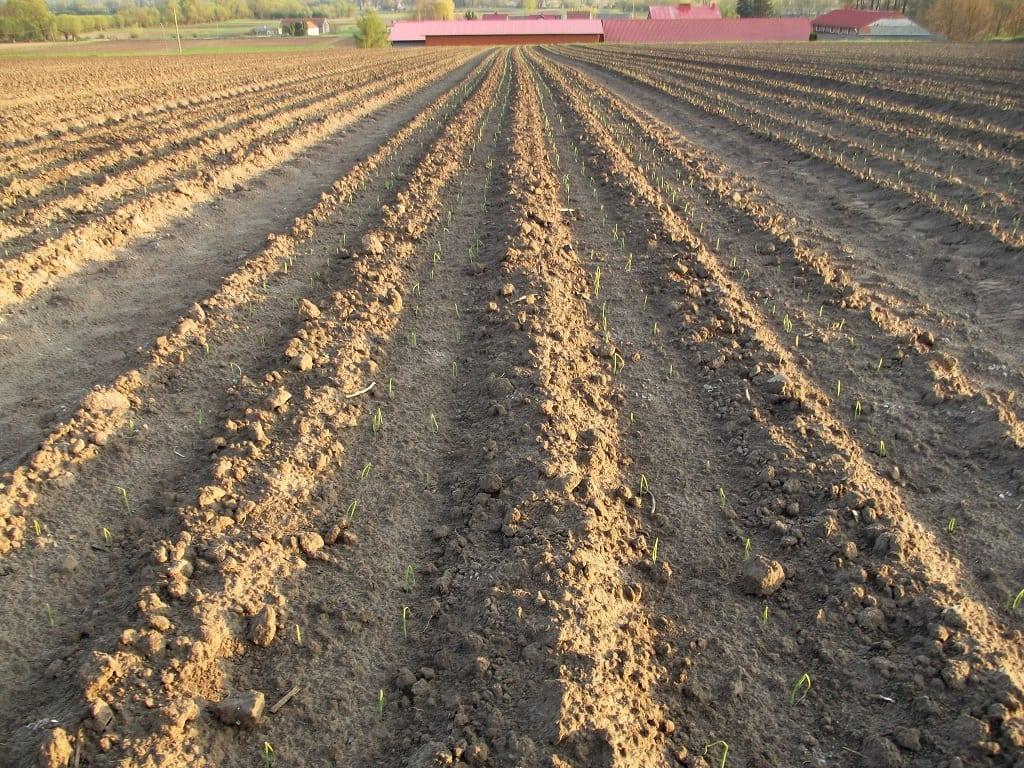W kwietniu zdarzają się wprawdzie dni z temperaturą sięgającą nawet 20 stopni, ale noce nadal są chłodne (lokalnie nawet do 5 stopni na minusie). Tymczasem większość warzyw do kiełkowania potrzebuje temperatury gleby na poziomie co najmniej 7-8°C. Dobra koniunktura warzyw korzeniowych sprawiła, że wielu plantatorów zdecydowała się na ich siew w pierwszej dekadzie marca. Utrzymująca się w glebie wilgoć sprawiła, że nasiona równo powschodziły. 21 kwietnia, na redlinach wyraźnie widoczne są już siewki roślin. Z obserwacji plantatorów z regionu Kazimierzy Wielkiej wynika, że występujące przygruntowe przymrozki nie osłabiły kondycji młodych roślin.