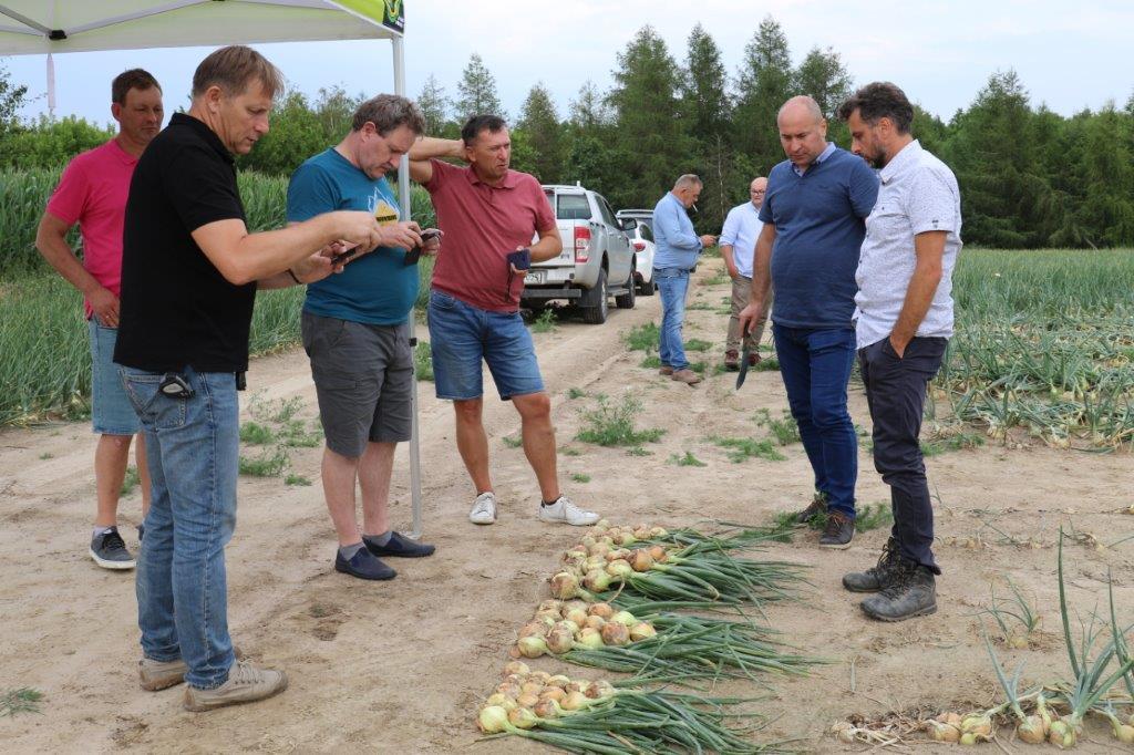 Gospodarz spotkania Eugeniusz Eichstaedt posadził rozsadę cebuli na glebie zaliczanej do IV a i b oraz V klasy bonitacyjnej. Rok wcześniej na tym polu był uprawiany jęczmień. Ponadto jesienią zastosował pomiot kurzy (12 t/ha). Wiosną wykonał nawożenie na podstawie analizy chemicznej podłoża. W trakcie sezonu cebula była regularnie zasilana odżywkami dolistnymi z oferty firmy ADOB. Plantator stosował również herbicydy, ale podkreślał, że starał się stosować małe, dzielone dawki. Wykonywał również zabiegi fungicydami i insektycydami, zgodnie z sygnalizacją, tak, żeby nie dopuścić do rozwoju patogenów czy szkodników. Nawożenie dolistne oraz zabiegi ochrony plantator zawsze stara się wykonywać w nocy ze względu na niższą temperaturę powietrza i wyższą wilgotność niż w ciągu dnia.