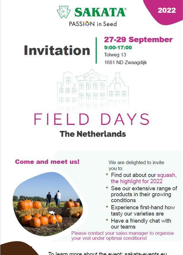 Firma Sakata serdecznie zaprasza na Dni Polowe w Holandii, które odbędą się w dniach 27-29.09.2022 w Zwagdijk.