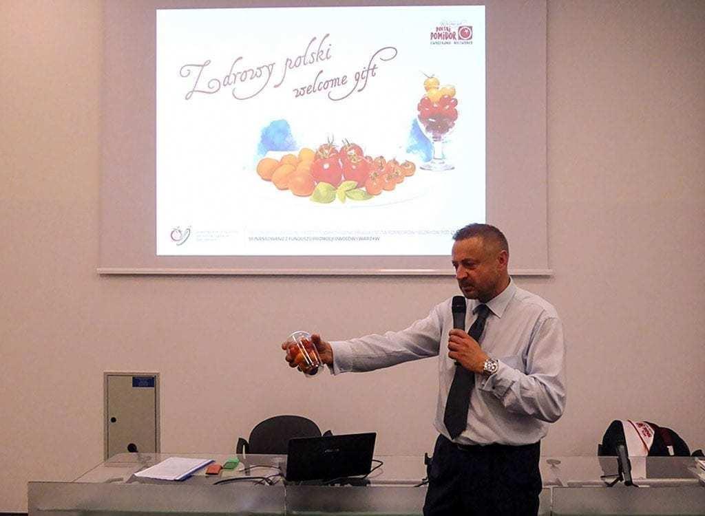 Stowarzyszenie Producentów Pomidorów i Ogórków pod Osłonami w dniach 25-28 września uczestniczyło w targach Invest Hotel w Poznaniu, promując wśród grupy HoReCa nowy trend związany z powitalnym poczęstunkiem dla gości, polegający na zapewnieniu zdrowego, polskiego "Welcome gift" w postaci elegancko wyeksponowanych na paterach, misach czy talerzach polskich pomidorów.