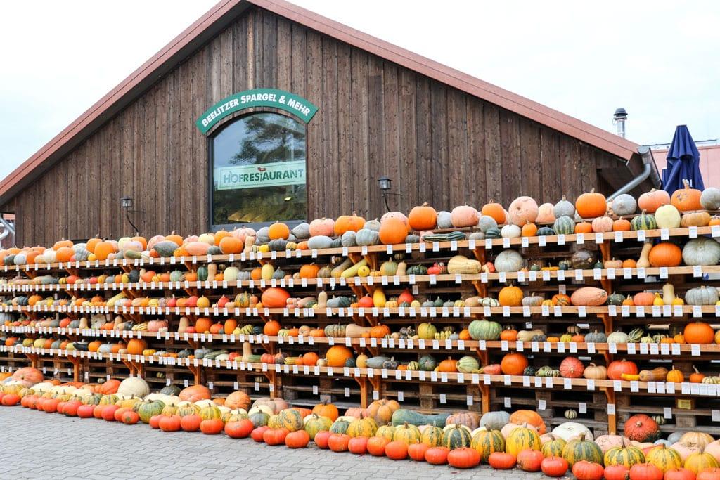 -Dynie uprawiane są z rozsady pochodzącej z gospodarstwa Schwanteland Jungpflanzen. Rośliny wysadzane są na polu na początku maja, na zagonach wyłożonych czarną, biodegradowalną folią. W trakcie wegetacji rośliny są nawadniane i nawożone oraz chronione przed chorobami i szkodnikami. Do uprawy co roku wybierane jest ok. 30 odmian zarówno jadalnych, jak i ozdobnych. Spośród odmian dyni, jedną z najpopularniejszych jest Hokkaido, ponieważ ona jest najczęściej oferowana w sieciach supermarketów, ale staramy się pokazywać ludziom, że jest wiele innych smaczniejszych odmian, które warto spróbować w swojej kuchni, np. Ibiza, która jest bardzo słodka i bardziej miękka niż marchewka, Muscat, Napoli czy Butternut – informowała Monika Wehner.