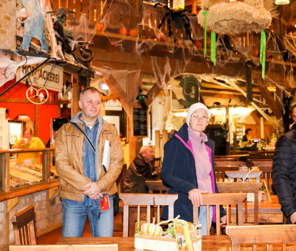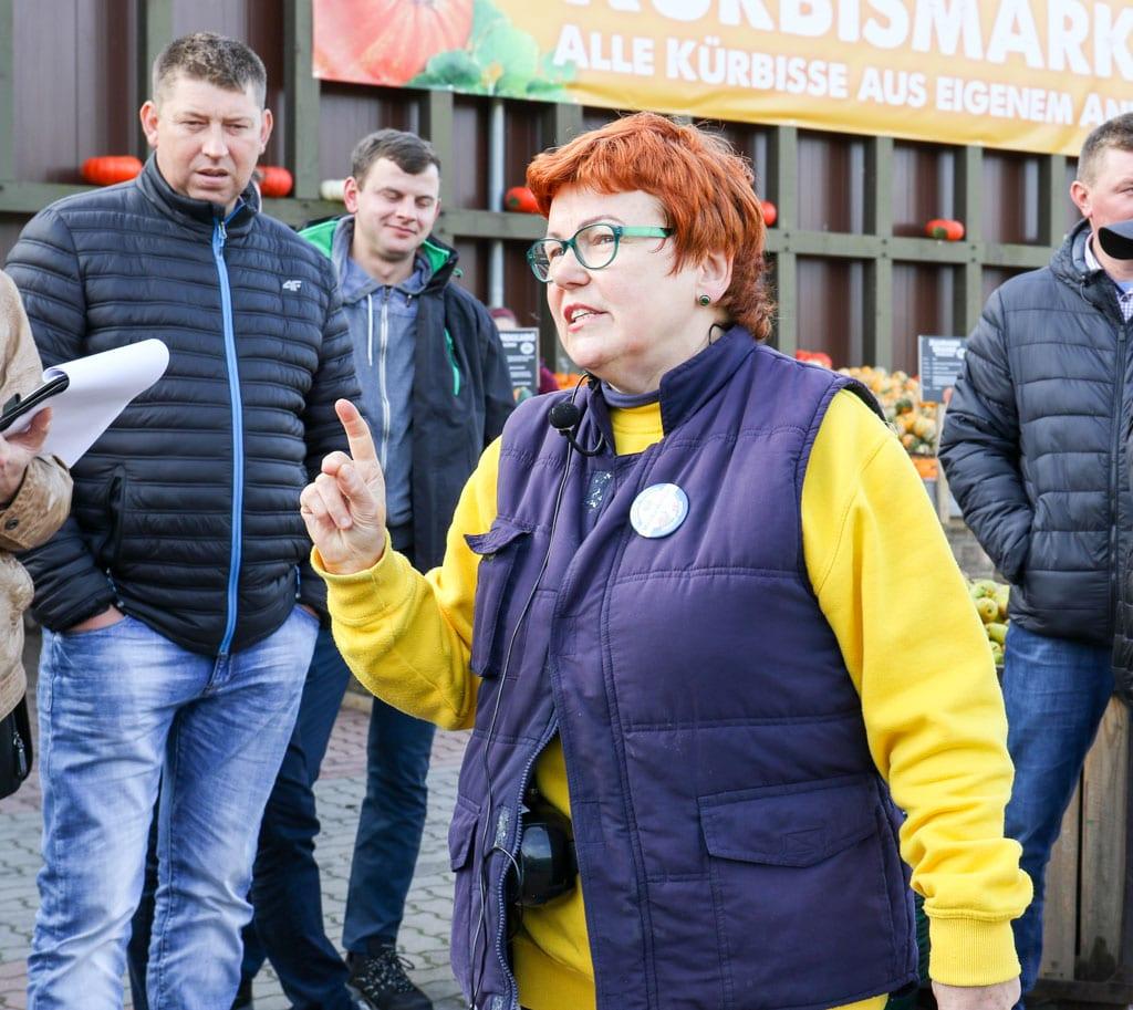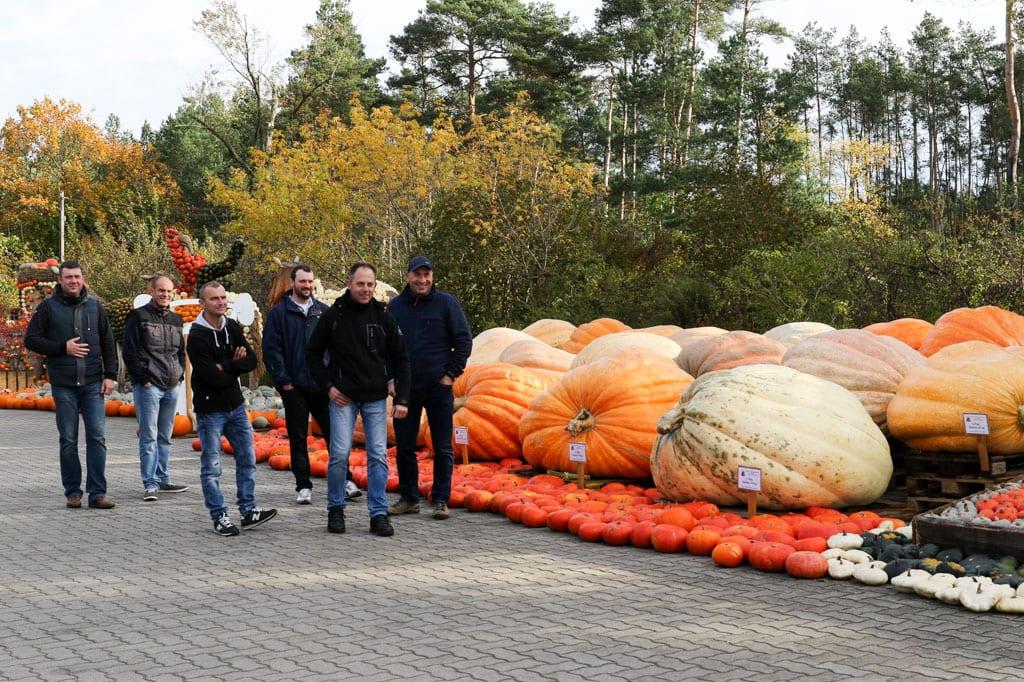 Historię tego miejsca przybliżyła Monika Wehner, z pochodzenia Polka, która pracuje tu już od wielu lat. Informowała ona, że jeszcze przed wojną istniał tu majątek znany głównie z uprawy szparagów (szparagarnie zajmowały nawet 1000 ha). - W latach powojennych teren był w rękach państwowych i produkowano m.in. ziemniaki i zboża. Dopiero na początku lat 90. ub. wieku tereny te najpierw wydzierżawili, a później kupili państwo Winkelmann i zaczęli odtwarzać produkcję szparagów na rynek berliński. Ich oferta została bardzo dobrze przyjęta i wkrótce klienci zaczęli sami przyjeżdżać nie tylko kupować wypustki, ale również po to, by spędzić trochę czasu poza miastem. Przedsiębiorczy właściciele postanowili to wykorzystać i poza rozwijaniem produkcji szparagów, wprowadzili także inne gatunki m.in. truskawki, borówki i właśnie dynie, by przez jak najdłuższy czas oferować klientom produkty. W ich gospodarstwie obecnie dominującą uprawą są szparagi (800 ha), a także borówka wysoka (150 ha) i truskawki (25 ha), a z warzyw duży udział ma dynia (60 ha) oraz uprawy zbóż. Na stałe zatrudnionych jest 70 osób, a od marca do grudnia – dodatkowo 300 osób. W okresie szparagowych zbiorów (maj-czerwiec) na polach pracuje nawet do 800 osób. Głównie są to pracownicy z Polski, ale także z Rumunii, Bułgarii i Ukrainy, pracują tu również uchodźcy – mówiła M. Wehner.