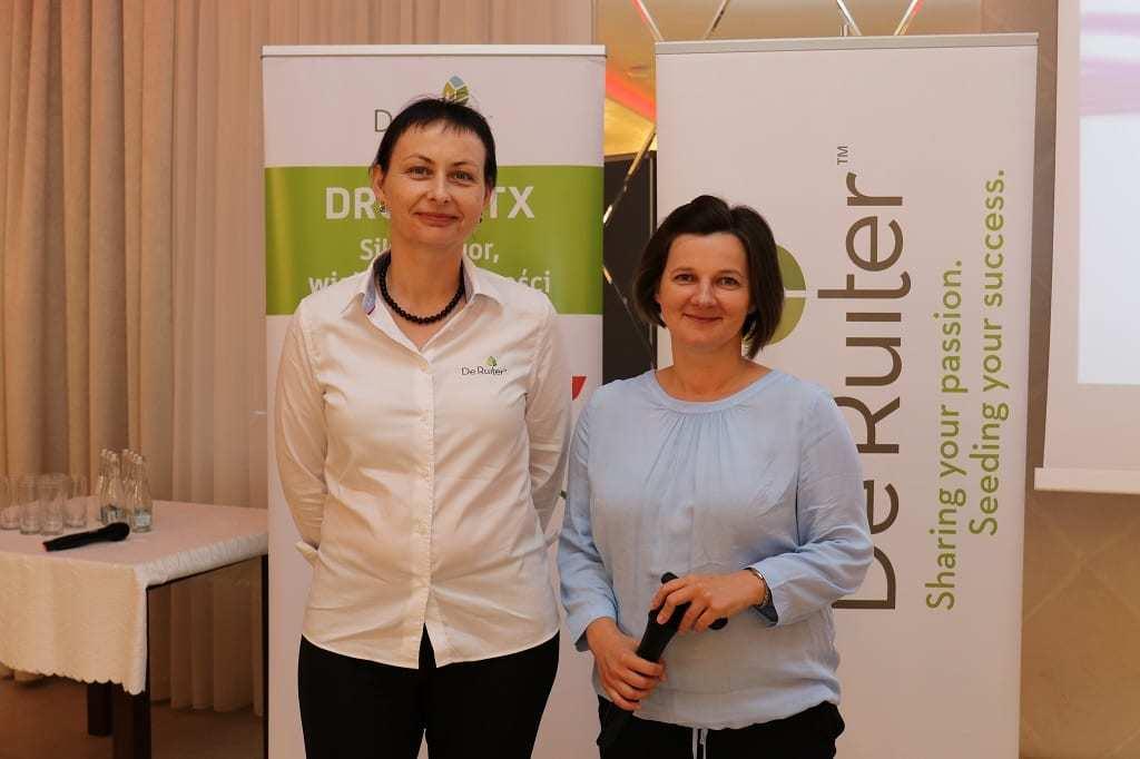 Dr Katarzyna Tykarska-Duchowska przypomniała po co się szczepi odmiany pomidora na podkładach. Informowała, że czynność ta pozwala na uzyskanie silnego systemu korzeniowego i wierzchołka roślin, przez co rośliny są mniej wrażliwe na suchą zgniliznę wierzchołkową i tworzą lepszej jakości owoce. W Holandii pomidory szczepione są głównie z powodu wirusa mozaiki pepino, który notowany jest również w Polsce, z tym, że należy pamiętać, że podkładka nie daje gwarancji powodzenia uprawy, ale jest narzędziem pozwalającym osiągnąć lepszą wydajność. Podkładki chronią przed chorobami odglebowymi, łatwiej systemowi korzeniowemu pracować w stresowych warunkach uprawy. Prelegentka zaprezentowała podkładkę DR01041TX F1, przeznaczoną do stosowania w długich cyklach uprawowych, jest to najsilniejsza podkładka z oferty De Ruiter. Zalecana jest do odmian intensywnie rosnących. Zdaniem przedstawicielki firmy stosowanie tej podkładki pozwala na uzyskanie wyrównania roślin w przypadku sadzonek dwupędowych oraz potencjalnie wyższego plonu. Owoce na pierwszych gronach są bardziej wyrównane.