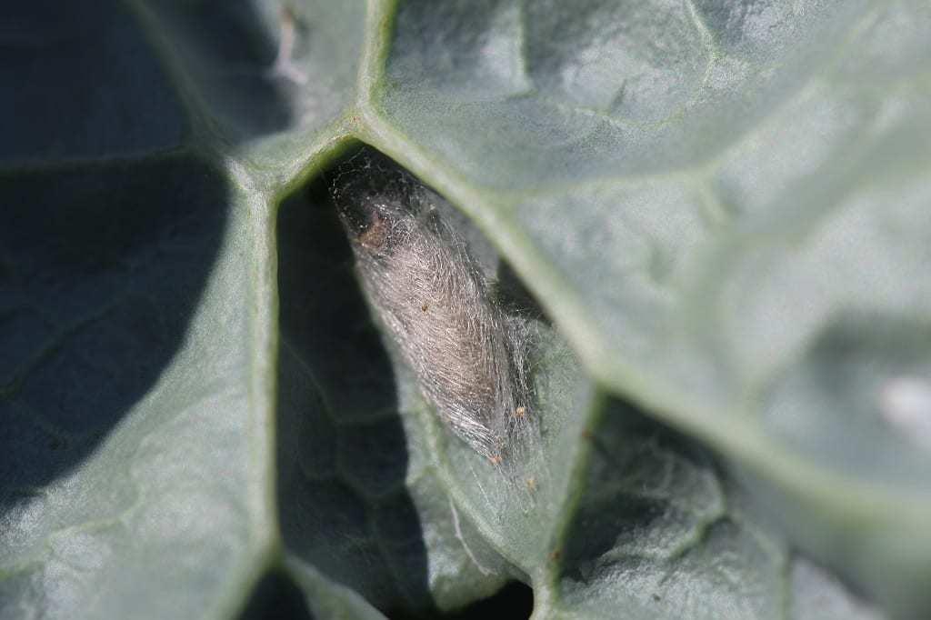 Naturalna ochrona stadium poczwarki (gęsty kokon uniemożliwiający dotarcie cieczy roboczej do ciała owada, fot. 3) i mobilność osobników dorosłych odżywiających się nektarem kwiatów, a nie tkanką roślinną pokrytą roztworem insektycydu, uniemożliwiają efektywną walkę. Bywa ona oczywiście udana, ale w takiej sytuacji, jak obecna, konieczne byłoby wykonanie kilku zabiegów, z uwzględnieniem różnych kombinacji odmiennie działających środków. Czynność tę musieliby jednak wykonać jednocześnie wszyscy właściciele na sąsiadujących ze sobą polach z uprawą kapustowatych. W przeciwnym razie z każdym kolejnym cyklem owada coraz trudniej będzie go wyeliminować, co przełoży się na przyhamowanie wzrostu roślin, wytwarzanie główek czy róż, a także na ich jakość. Ogrodnicy, którzy prowadzą intensywną ochronę upraw przed tym motylem, niestety nie zawsze są zadowoleni z efektów. Mamy do czynienia z owadem, który się przemieszcza aktywnie kierując się zapachem rośliny żywicielskiej, aby na niej złożyć kolejne jaja.