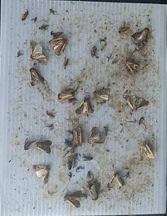 Niepokojący jest fakt, że od ostatniej obserwacji przez kolejne 6 dni odłowiło się 17 sztuk rolnicy zbożówki!!!! Sierpień jest drugim okresem dużego zagrożenia ze strony tego gatunku o czym świadczy obecnie odławianie się tak dużej liczby motyli, kiedy rośliny znajdują się w fazie wzrostu korzeni/cebul /bulw i innych części konsumpcyjnych.