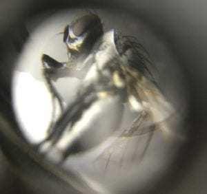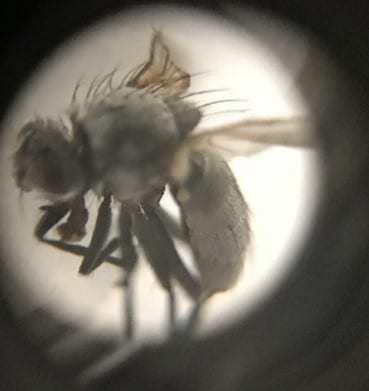 Progiem szkodliwości jest odłowienie 2 muchówek dziennie przez kolejne 2 dni lub obecność >10 jaj z 10 obserwowanych roślin. Mucha wielkości 5-6 mm, szara z czarnymi szczecinkami, z przezroczystymi opalizującymi skrzydłami, oczy brązowe. Jaja składane są na glebę w okolicy roślin lub na roślinie w okolicy szyjki korzeniowej. Jaja są wielkości