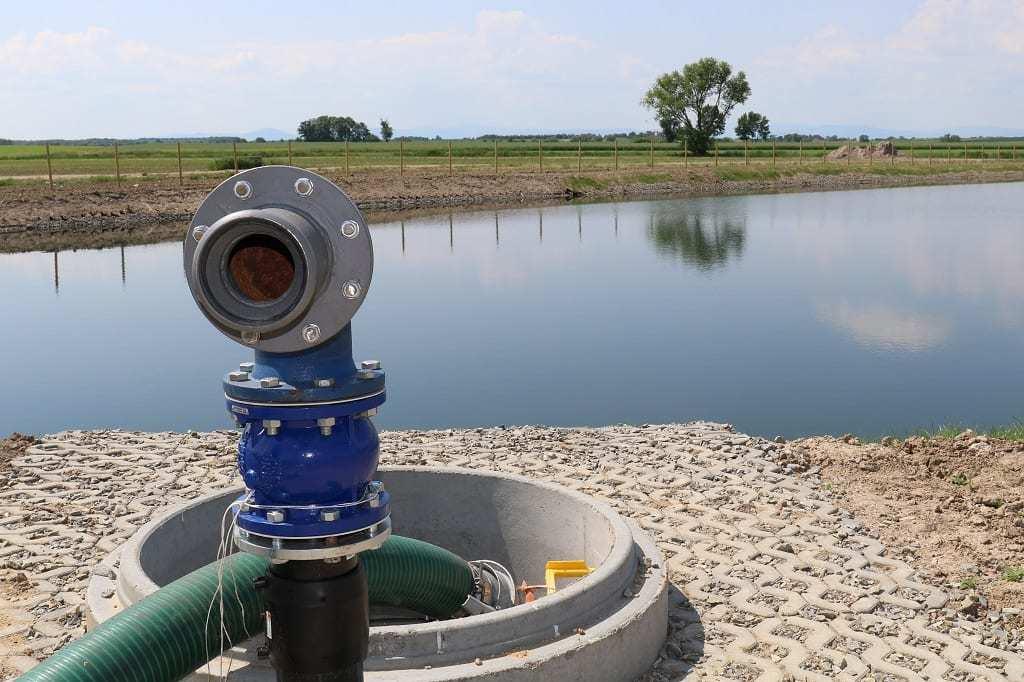 Wybudowano zbiornik o kubaturze 22 tys. m3 wody. W zależności od wysokości napełnienia jest w nim magazynowane od 12 do 16 tys. m3 wody. Taka ilość powinna wystarczyć na jednorazowe nawodnienie pola dawką 12–16 litrów/m2 o powierzchni ok. 100 ha. Zbiornik oraz ujęcie wody zostały zbudowane od podstaw na podstawie projektu przygotowanego przez biuro projektowe Hydrofar. Jego lokalizację zaplanowano tak, aby napełnienie zbiornika wodą z rowu było grawitacyjne. Ponadto wykonano zabezpieczenia, żeby w przypadku np. obfitych opadów, móc odprowadzić nadmiar wody z powrotem do rowu. Andrzej Lesiak podkreślił, że dzięki właściwemu i starannemu przygotowaniu dokumentacji projektu, uzyskano pozwolenie wodnoprawne wydane przez Wody Polskie w ciągu miesiąca. Przez kolejny miesiąc udało się otrzymać pozwolenie na budowę w Starostwie Powiatowym w Nysie.