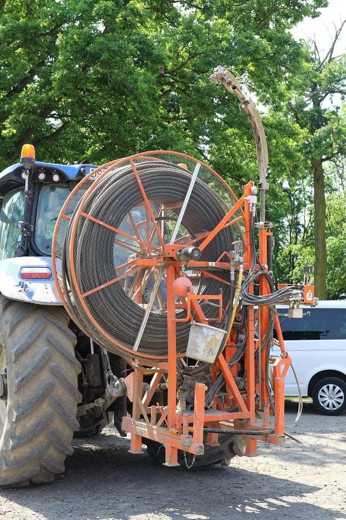 Jak informował właściciel gospodarstwa jest to rejon, w którym występuje spora ilość opadów, sięgająca 650 mm rocznie. Niestety są one nieregularnie rozłożone w ciągu roku. Na przykład w 2019 r. panowała susza, która wpłynęła na redukcję plonów, natomiast w 2020 r. opadów było zbyt dużo. Sytuacja ta pokazała wiele wad melioracji pól w obrębie gospodarstwa, które wynikały głównie z braku konserwacji. Są to instalacje z różnych okresów. Część z nich pochodzi jeszcze z czasów przedwojennych, ale są też późniejsze – z lat 60., 70. oraz z kilku ostatnich. Właściciel gospodarstwa zdecydował o naprawie systemów melioracyjnych. Na niektórych polach całą meliorację wykonano od nowa, tak żeby system ten był skuteczny. Warto wiedzieć, że prace te nie dość, że są kosztowne, to jeszcze przed ich rozpoczęciem trzeba uzyskać stosowne zgody na odprowadzenie wody z pola do rowów melioracyjnych. Wody Polskie muszą wydać decyzję w sprawie melioracji danego pola, nawet jeśli jest to własność prywatna. Projekt melioracji był przygotowany przez specjalistów z zakresu hydrologii, którzy zaplanowali cały system melioracyjny. Część sieci melioracyjnej naprawiana jest przez firmy zewnętrzne, a część we własnym zakresie za pomocą urządzenia zawieszanego na ciągniku, wyposażonego w specjalną dyszę, przez którą pompowana jest woda ze zbiornika pod wysokim ciśnieniem.