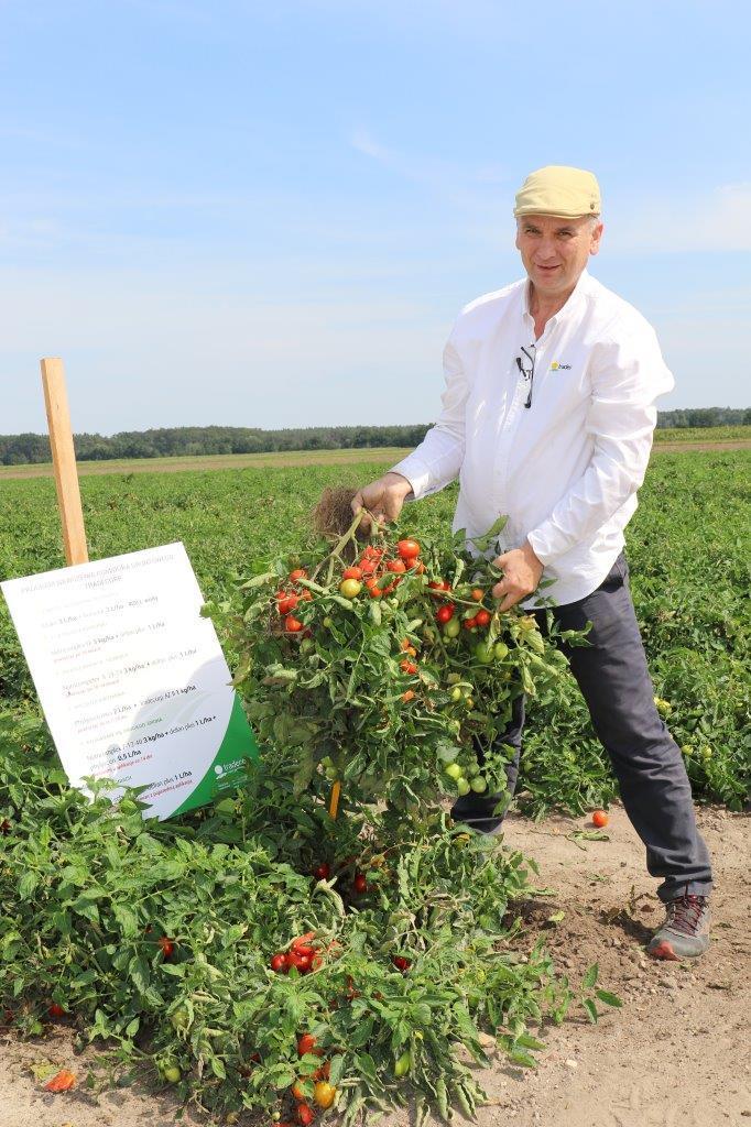 W programie dokarmiania pomidorów warto od momentu kwitnienia zastosować nawóz mikroelementowy – Tradecorp AZ II. Jest to zestaw mikroskładników niezbędnych dla prawidłowego wzrostu pomidora. Zawiera m.in.: Fe, Zn, Mn, B. Firma zaleca ten produkt do stosowania zapobiegawczego, ponieważ jeśli na roślinach wystąpią objawy niedoboru np. żelaza czy manganu, to już mocno ograniczają plonowanie. Warto pamiętać, że mangan i cynk wzmacniają zawiązywanie owoców.