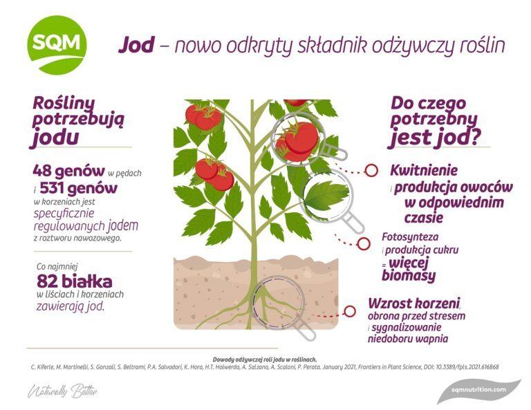 Biorąc pod uwagę naukowo dowiedzioną rolę jodu jako ważnego składnika pokarmowego roślin, firma SQM — światowy lider w specjalistycznych pożywkach dla roślin — dołożyła wszelkich starań, aby opracować specjalny nawóz do upraw poddawanych fertygacji, który pozwala na podawanie jodu (jako mikroskładnika odżywczego roślin) w bezpiecznej formie i dawce przygotowanej w oparciu o wyniki badań naukowych.