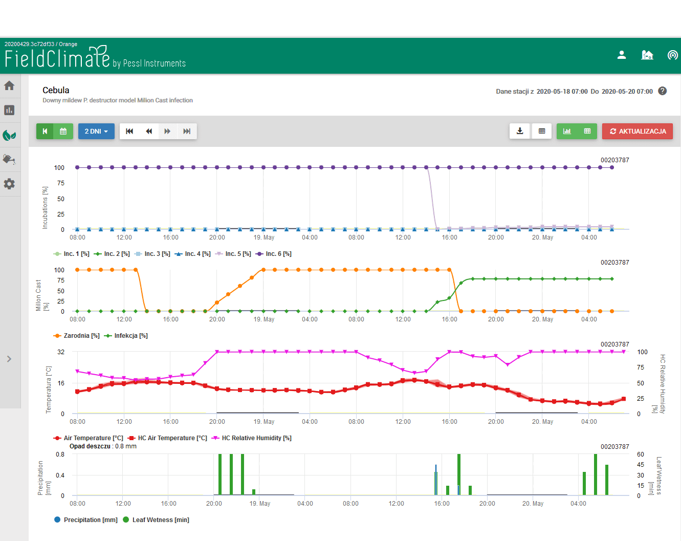 • W późniejszym okresie wzrostu - od momentu formowania się cebul zaleca się zastosowanie środka Fandango 200 EC w dawce 1,0 -1,25 l/ha, który zapewnia ochronę przed mączniakiem rzekomym, zgnilizną szyjki cebuli oraz ogranicza rozwój Stemphylium . Maksymalna ilość zabiegów w sezonie 4, zalecana ilość wody 200- 400 l/ha.