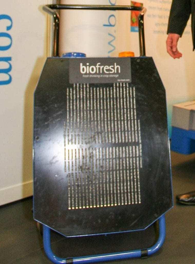 Technologię ozonowania pomieszczeń, w których przechowuje się owoce i warzywa, m.in. komór przechowalniczych czy samochodów transportowych, oferuje też firma BioFresh, a jej urządzenia na polski rynek wprowadziło przedsiębiorstwo Thermolux z Raszyna. Jedną z propozycji są jednostki dezynfekujące DCU (fot. 3), które można wykorzystać do odkażania ozonem magazynów, komór w chłodniach i przechowalniach, a także kontenerów na samochodach i naczepach chłodniczych do przewozu owoców. Urządzenie to wytwarza ozon o wysokim stężeniu i może stanowić alternatywę dla środków chemicznych używanych do odkażania pomieszczeń oraz plastikowych i drewnianych skrzyniopalet. Jak informował Marek Baraniak z firmy Thermolux, obecnie w sprzedaży są dwa typy jednostek dezynfekujących: o wydajności 12 i 24 g O3/godz.