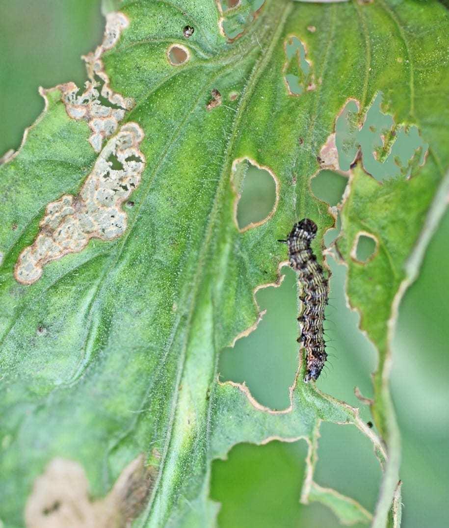 Spośród innych gąsienic z rodziny sówkowatych zjadających liście i owoce papryki pojawić się może słonecznica orężówka - Helicoverpa armigera.