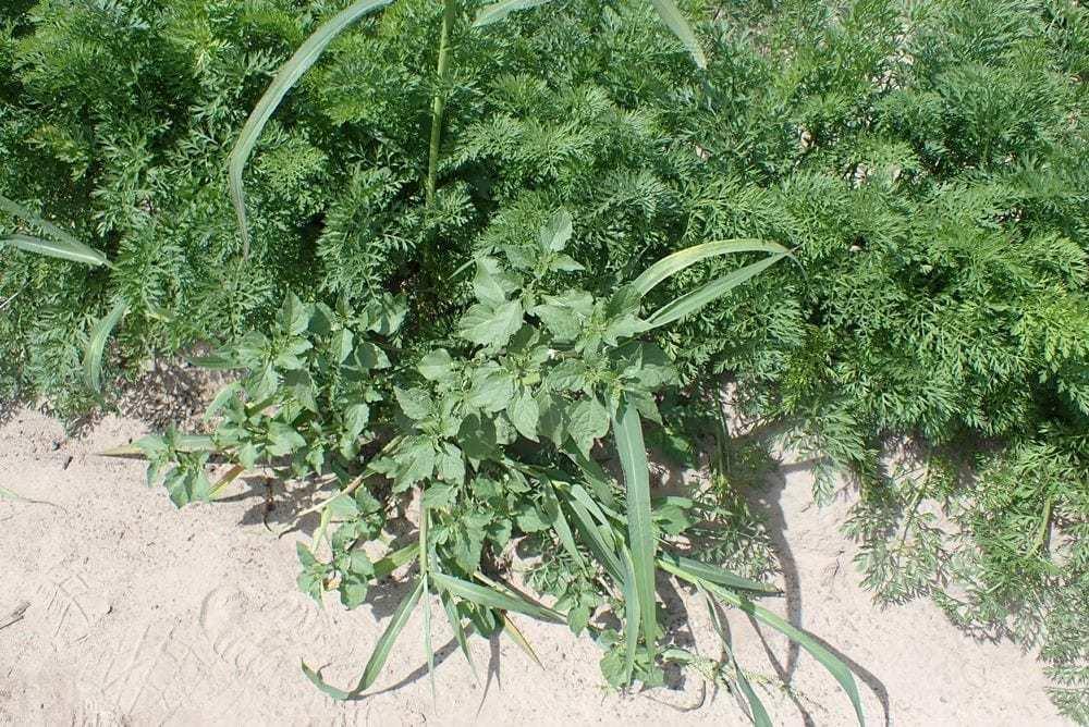 W większości przypadków, w różnych powtórzeniach, w zmiennym nasileniu, w zależności od sekwencji użytych herbicydów problem stanowiły m.in. chwasty ciepłolubne jak żółtlica, psianka (fot. 2), chwastnica. Najprawdopodobniej wynikało to z przesunięcia terminu ich wystąpienia, późniejszego niż zwykle, albo… jest to wtórne zachwaszczenie do którego doszło na skutek rozmycia redlin i zniszczenia przez nawalne deszcze powłoki Bandur pokrywającej powierzchnię podłoża – informowali K. Gładka-Kubiak oraz Radosław Suchorzewski specjalista firmy Bayer w zakresie upraw warzywnych, sadowniczych i ziemniaków. Ze starcem, który występował w największym nasileniu poradzono sobie w każdym doświadczeniu, natomiast system, w którym składową był flurochloridon okazał się dodatkowo doskonały w zwalczaniu psianki. Dobrana przez nas dawka flurochloridonu jest bezpieczna dla marchwi i wystarczająca przeciwko chwastom – precyzowała K. Gładka-Kubiak