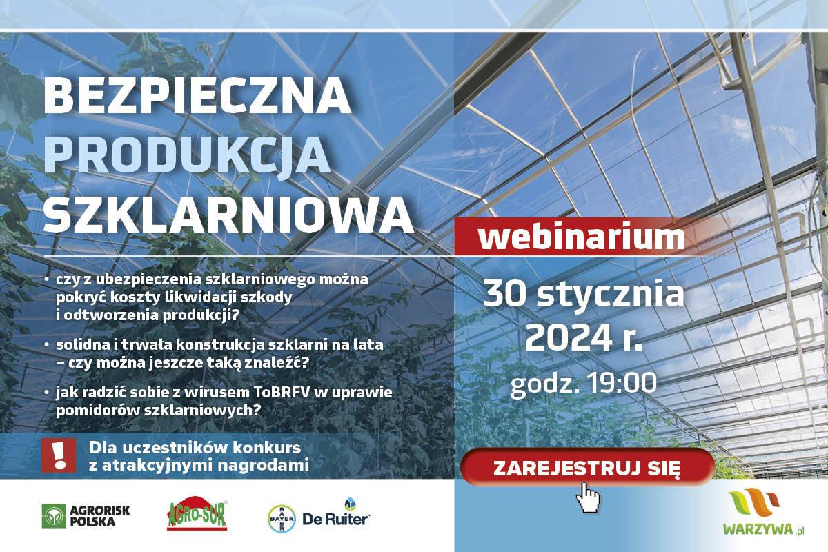 Czy z ubezpieczenia szklarniowego można pokryć koszty likwidacji szkody i odtworzenia produkcji? Czy można jeszcze znaleźć solidną i trwałą konstrukcję szklarni na lata? Jak radzić sobie z wirusem ToBRFV w uprawie pomidorów szklarniowych? Na te i na inne pytania odpowiemy podczas webinarium "Bezpieczna produkcja szklarniowa", które odbędzie się 30 stycznia 2024 roku.