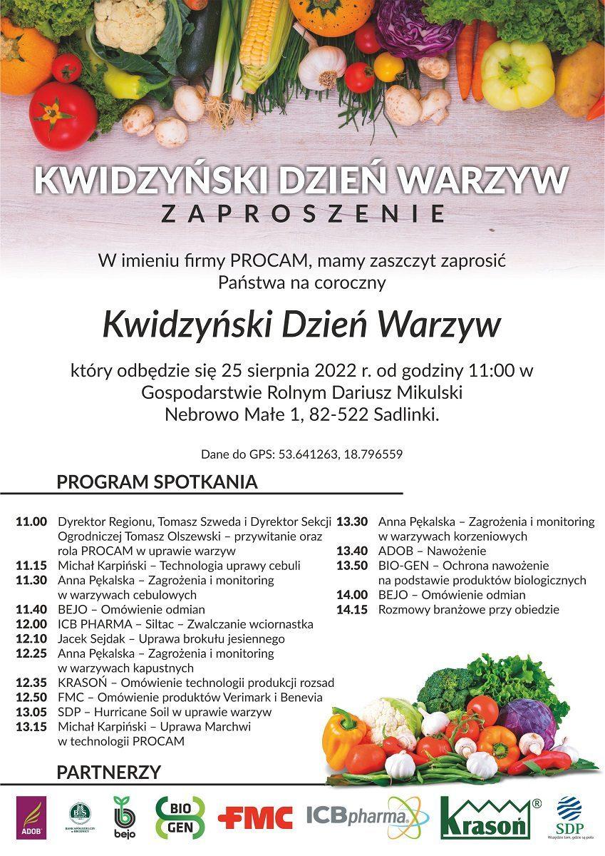 25 sierpnia 2022 w gospodarstwie Dariusza Mikulskiego w miejscowości Nebrowo Małe odbędzie się Kwidzyński Dzień Warzyw. Na miejscu zaprezentowane zostaną ciekawe technologie w uprawie warzyw. Organizatorem tego wydarzenia jest firma PROCAM wraz z Partnerami.