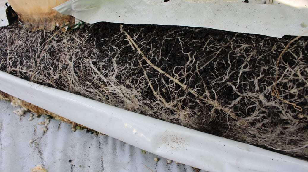 – Korzenie przerastają równomiernie całą matę i nie zaobserwowałem efektu ich wymiany tj. zamierania i odtwarzania. Zaletą Carbomat jest też szybkie osuszanie maty, co ogranicza ryzyko zalania korzeni. Rośliny uprawiane na tym podłożu rosną bardzo szybko i wcześnie wchodzą w okres owocowania, zrzucają mniej owoców i lepiej plonują. W warunkach panujących w moich obiektach międzywęźla są nieco krótsze niż wcześniej w uprawie na wełnie. Rośliny nie wymagają intensywniejszej pielęgnacji niż w innych systemach bezglebowych. Przy obecnym sposobie uprawy osiągamy plony o ponad 10% wyższe niż wcześniej – podkreśla Damian Kudaś. Ogrodnik ze Szczytnik do fertygacji stosuje taką samą pożywkę jak przy uprawie na wełnie mineralnej. EC roztworu na kroplowniku utrzymywane jest na poziomie 2,5–2,6 mS/cm, wyższe niż standardowo jest natomiast jego pH. Wynosi ono ok. 6,2, zamiast 5,5 ze względu na mniejsza ilość pożywki znajdującą się w macie, szybsze osuszanie podłoża oraz brak efektu zwiększania się pH roztworu w macie po nocy.