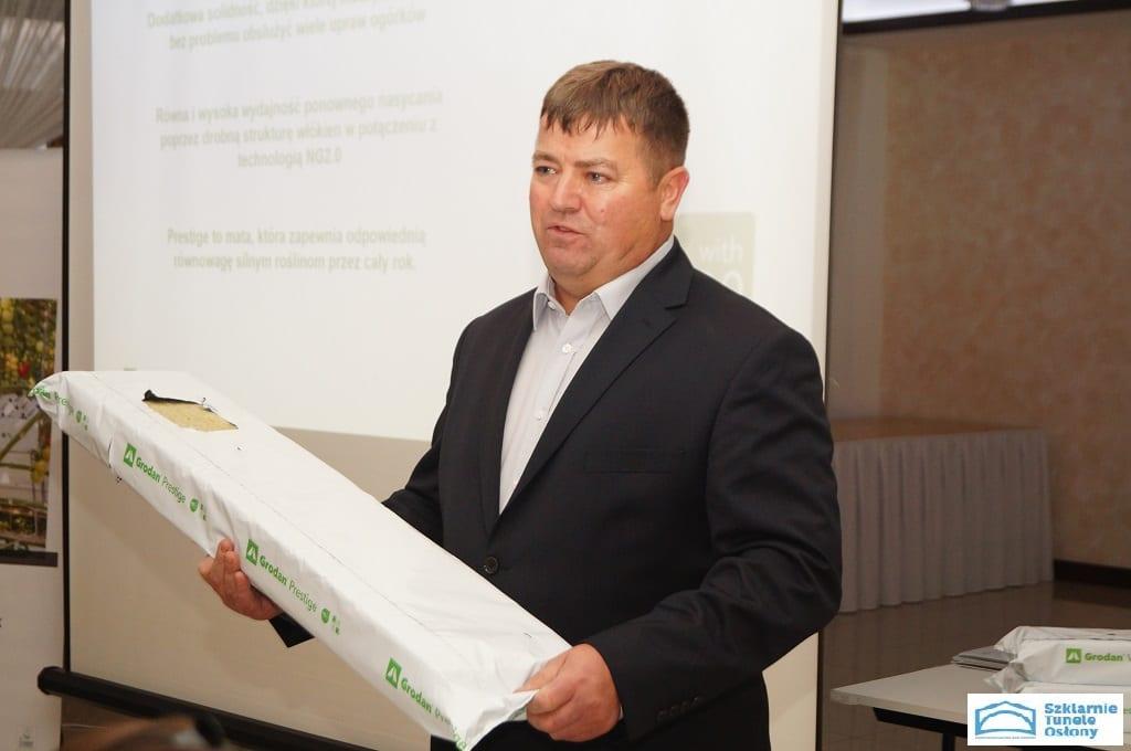 Marcin Włodarczyk, konsultant techniczny firmy Grodan, mówił o nowych rozwiązaniach w produkcji podłoży w celu zapewnienia najlepszych warunków do rozwoju systemu korzeniowego. − Technologia NG2.0 (Next Generation 2.0) pozwala na szybsze pierwsze nawadnianie podłoża oraz ulepszone rozprowadzenie wody w całej jego objętości. Ponadto umożliwia umiejętne sterowanie wzrostem roślin, zwiększa wydajność produkcji przy jednoczesnym ograniczeniu zużycia wody i składników mineralnych. W tej technologii produkowane są kostki i maty uprawowe − mówił M. Włodarczyk. Prelegent zaprezentował nową matę o nazwie Prestige, o wysokiej wydajność resaturacji uzyskanej dzięki nowej strukturze włókien oraz technologii NG2.0. System korzeniowy roślin bardzo szybko rozwija się w całej objętości podłoża również w górnej części maty (jest to szczególnie widoczne w przypadku maty o wysokości 10 cm). Podczas całego sezonu wegetacyjnego roślina stale tworzy nowe korzenie przybyszowe u podstawy łodygi. W wyniku tego powstaje zdrowa, silna roślina, zapewniająca wysoki poziom produkcji do końca sezonu.