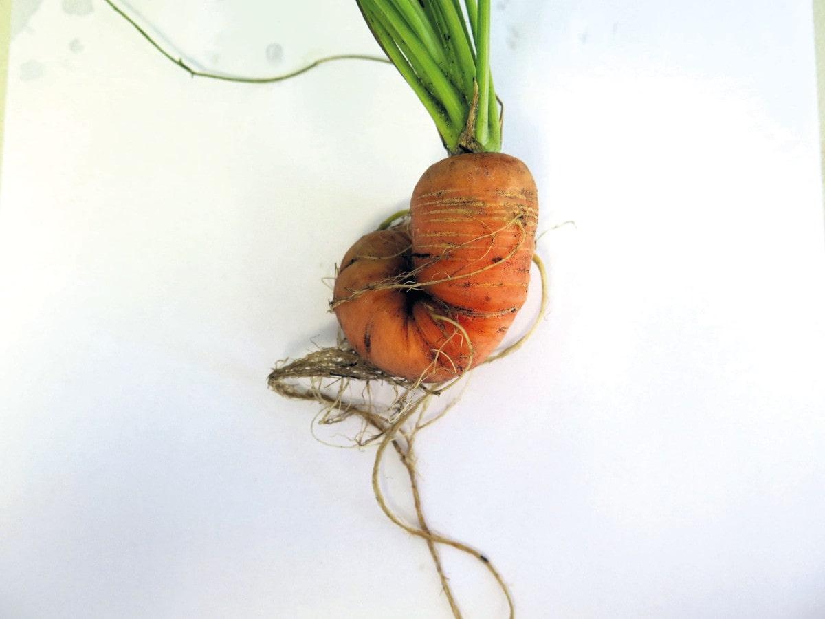 Najgroźniejszym nicieniem spotykanym w uprawie marchwi jest z pewnością szeroko rozpowszechniony w Polsce i na świecie guzak północny (Meloidogyne hapla). Ten nicień jest w stanie żerować na prawie wszystkich dwuliściennych roślinach uprawnych i dziko rosnących, w tym na marchwi, pietruszce, ziemniaku czy pomidorze. Charakterystycznymi objawami dla guzaka północnego są guzowate wyrośla na korzeniach. Deformacja i uszkodzenie systemu korzeniowego powodowane przez guzaka północnego prowadzi do utrudnienia przewodzenia substancji odżywczych i wody w roślinie, a intensywne porażenie marchwi skutkuje skróceniem i zniekształceniem korzeni. Duże liczebności nicienia w podłożu mogą doprowadzić do placowego więdnięcia i skarlenia roślin na polu. Co ciekawe jedna samica guzaka północnego jest w stanie wyprodukować w ciągu całego swojego życia nawet 1000 jaj. Potencjał reprodukcyjny tego gatunku jest więc naprawdę duży. Czas rozwoju pokolenia guzaka północnego jest zależny od temperatury. W naszych warunkach klimatycznych larwy inwazyjne wylęgają się zwykle przy temperaturze około 12°C, a czas potrzebny do rozwoju całego pokolenia wynosi około 9–13 tygodni. W przypadku marchwi rozwijają się na niej dwa pokolenia guzaka w sezonie.