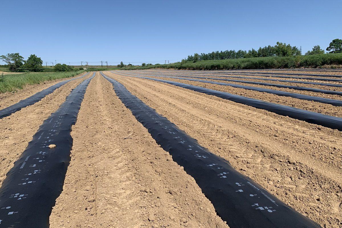 Do jednoczesnego rozłożenia folii ściółkującej oraz linii nawadniającej zastosowano prostą maszynę z talerzami zgarniającymi. W tym przypadku najistotniejsze jest starannie przygotowane stanowisko. Do wyściółkowania zagonów użyte zostały dwa rodzaje folii standardowa i biodegradowalna z firmy Geopolska. Z kolei instalacja nawodnieniowa została zaprojektowana przez firmę Milex.