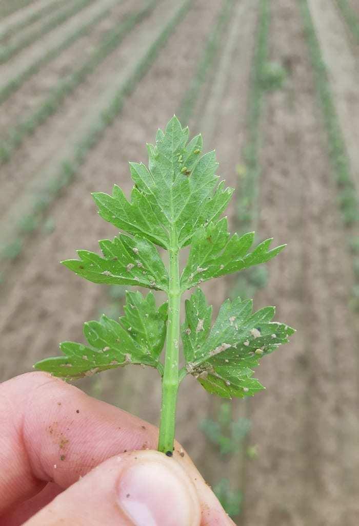Na polach selera korzeniowego są już wykonane pierwsze zabiegi fungicydowe oraz herbicydowe. Jednak w wielu przypadkach występują uszkodzenia plantacji po zabiegach odchwaszczania. Do najczęściej obserwowanych objawów fitotoksycznego działania herbicydów należą chlorozy blaszek liściowych, w postaci pojedynczych plamek, bądź żółknięcia całych blaszek - informuje M. Dąbrowski.