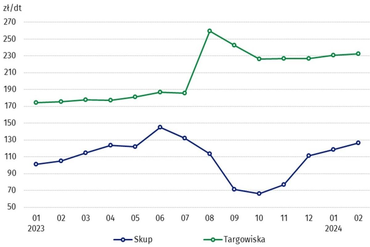 Ceny skupu podstawowych produktów rolnych, jak informuje Główny Urząd Statystyczny, spadły w lutym 2024 r. zarówno w stosunku do miesiąca poprzedniego (o 0,2%), jak i w porównaniu z analogicznym okresem ubiegłego roku (o 15,4%). Niemniej, tak jak wspominaliśmy, ziemniaki pozostają wyjątkiem i kontynuują trend wzrostowy.