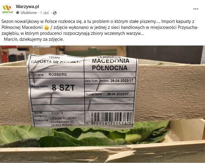 – Dotarły do nas zdjęcia przedstawiające importowaną z Macedonii kapustę głowiastą, sprowadzaną przez jeden z czołowych skupów naszego regionu! PYTAMY DLACZEGO? Chociaż jednoznacznie widać, iż pan skupowy ma na celu jedynie dobro własnego interesu! Jeżeli takie sytuacje będą nagminnie miały miejsce, będziemy publikować zdjęcia oraz zachęcać wszystkich do bojkotowania takiego skupu – przekazują producenci.