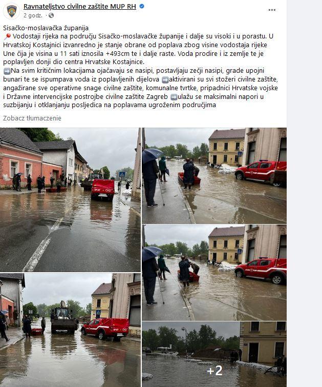 W Chorwacji powódź dotknęła wiele miejscowości. Zalane są wsie, nawet duże miasta. Mieszkańcy w wielu miejscach są pozbawieni elektryczności. Zalane są tereny w rejonie Benkovac, Lisane Ostrovicke, Udbina, Krusevo i Obrovac. Jednym z najbardziej poszkodowanych miast są Obrovac i Gracac. Ta informacja dotyczy również terenów rolniczych, miejsc, gdzie uprawiane są warzywa. Straty w rolnictwie są ogromne.