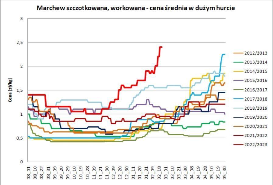 Wysokie koszty przechowywania przyśpieszyły handel marchwią, szybciej niż zwykle. Wielu producentów sprzedało sporą ilość towaru zaraz po zbiorze, nie czając na rachunki za wysoką energię. Kolejne spływające z krajów Europy dane potwierdzały, że wszędzie zbiory tego warzywa były niskie lub bardzo niskie. To wszystko składa się na lepszą sytuację cenową na rynku.