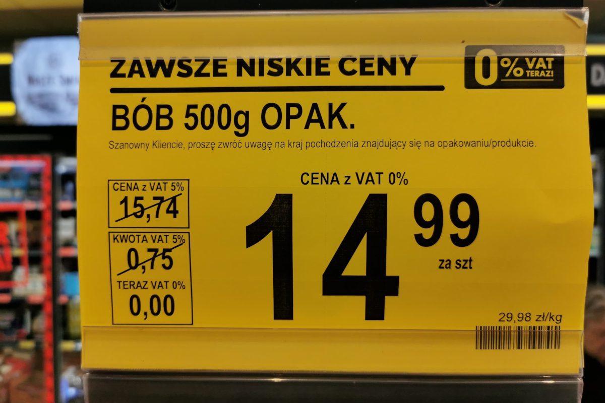 Konsumenci skarżą się na ceny bobu i nie ma się co temu dziwić… Stawki w marketach są ponad dwukrotnie wyższe niż u producenta. W jednej z popularnych sieci marketów, której hasłem przewodnim są „zawsze niskie ceny”, znaleźliśmy bób w cenie 14,99 zł za 500 gram, czyli niemal 30,00 zł za kilogram. Stanowi to kolejny przykład na to, jak wysokie są marże pośredników jak i samych marketów.