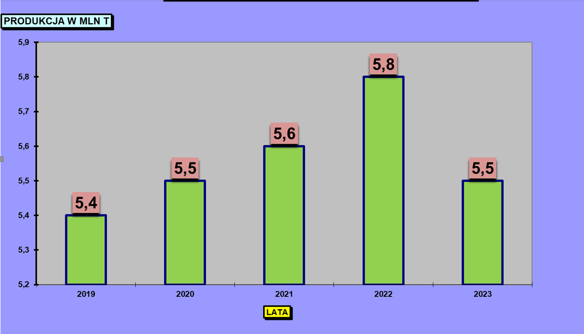 Wykres 2. Produkcja warzyw w Polsce w latach 2019–2023 (szacunek)
