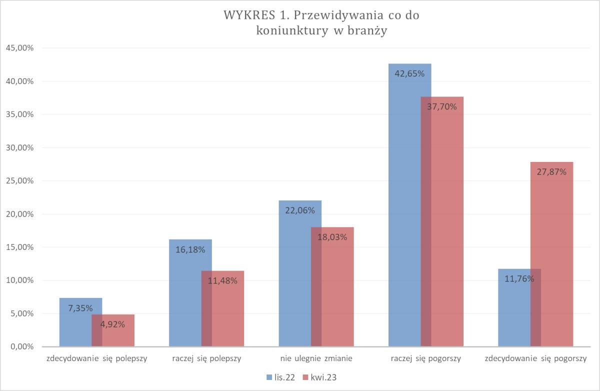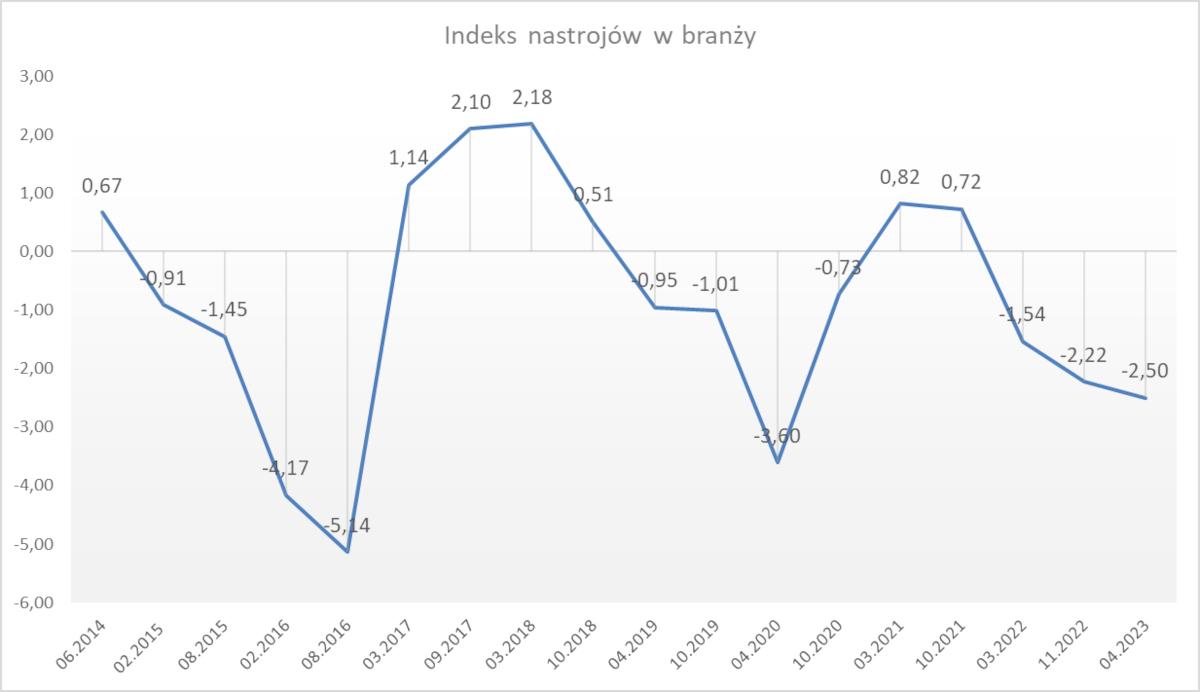 Niewielki spadek ogólnej wartości indeksu spowodowany jest głównie dwoma aspektami. Po pierwsze wzrosła ilość przedsiębiorców, którzy uważają, że sytuacja w branży się zdecydowanie pogorszy. Obecnie niemal 28% respondentów tak właśnie uważa, podczas gdy pół roku temu było to niespełna 12% biorących udział w badaniu. Tym samym zmniejsza się odsetek odpowiedzi przewidujących polepszenie się koniunktury w branży.