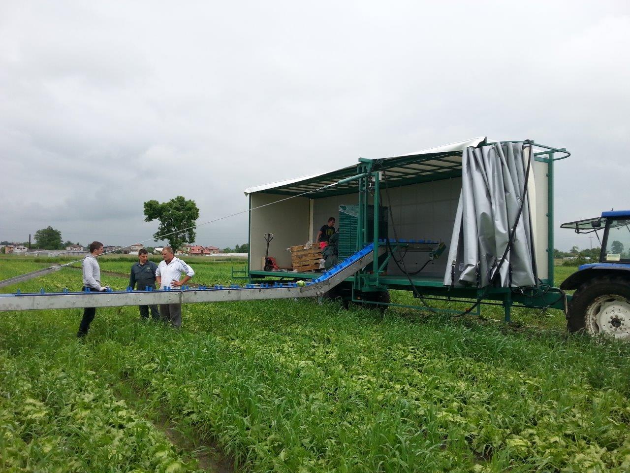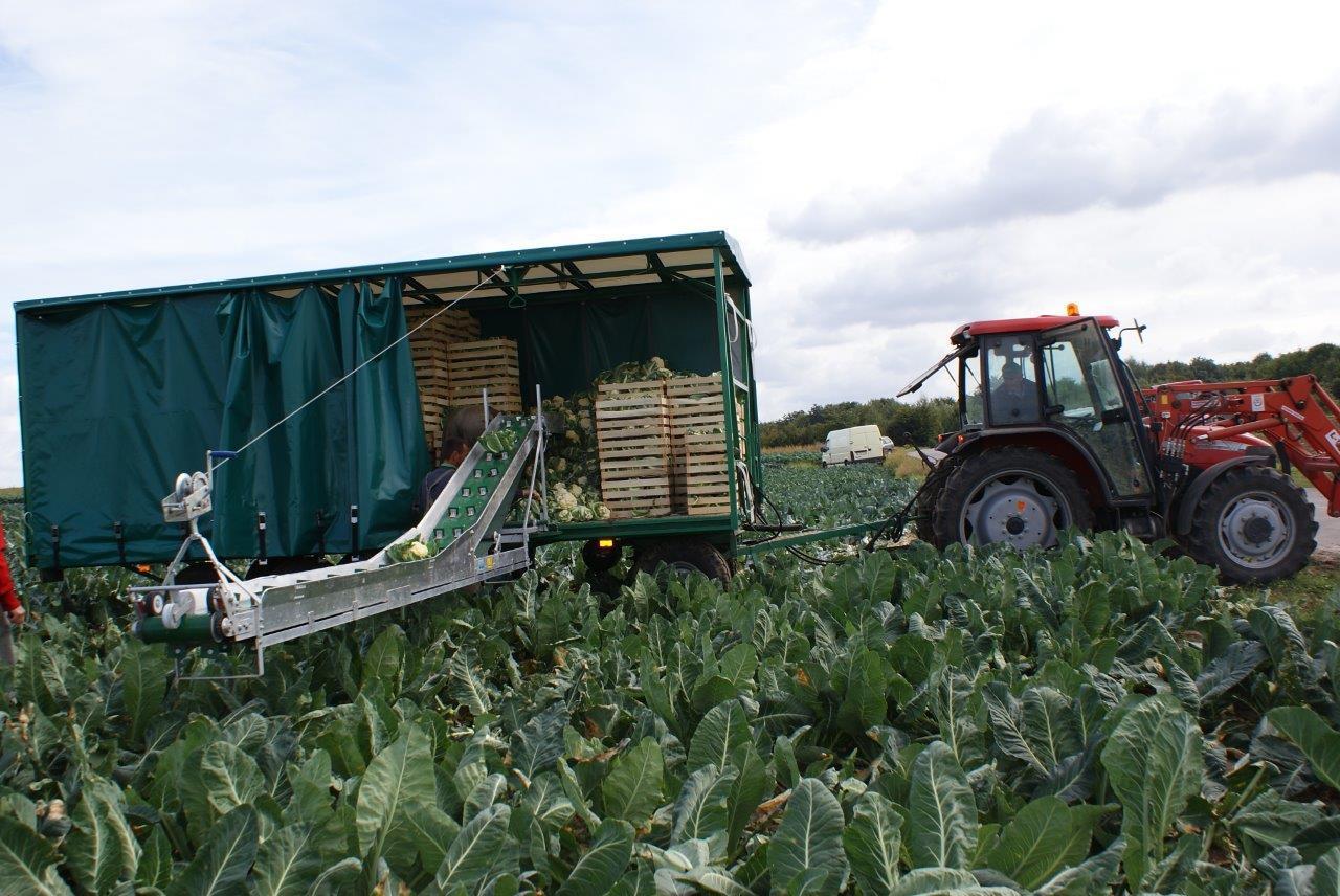 W gospodarstwach specjalizujących się w produkcji warzyw kapustnych, ich zbiór najczęściej odbywa się ręcznie do skrzynek lub skrzyniopalet ustawionych na przyczepach. W takich warunkach często dość trudno o wydajną pracę, ponieważ pracownicy tracą wiele energii na odpowiednio wysokie podnoszenie skrzynek lub główek kapusty, w celu załadowania ich na przyczepy. Znacznym usprawnieniem skutkującym zwiększeniem tempa pracy jest wykorzystanie przenośników, które mogą być zamontowane na specjalnej, niskopodwoziowej platformie – wyposażonej w zadaszenie (plandekę) zabezpieczającą zebrane warzywa przed nadmiernym nagrzewaniem. Na platformach może się odbywać wstępne sortowanie i pakowanie warzyw, np. główek sałaty czy kapusty pekińskiej w worki foliowe. Producenci sprzętu posiadają w ofercie również taśmociągi do transportowania zebranych główek lub róż bezpośrednio na tradycyjne przyczepy.