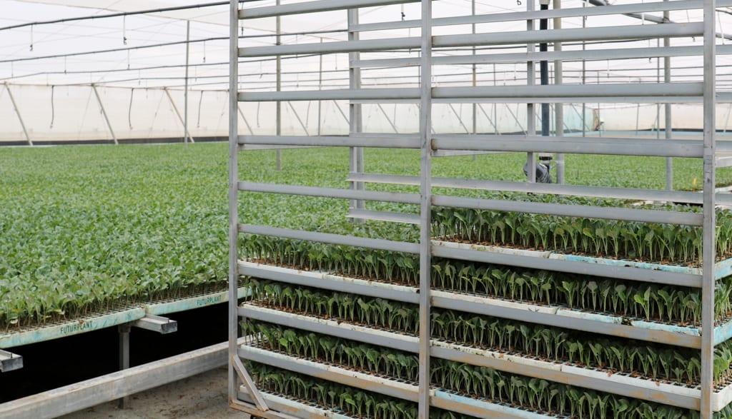 Odwiedziliśmy m.in. producenta rozsady FuturPlant Semillas SL k. miasta Lorca. Na początku marca mogliśmy zobaczyć tam brokuły w fazie siewek – w tunelu foliowym oraz hartowanie gotowej rozsady pod konstrukcją przykrytą siatką. Spośród innych gatunków ten producent rozsady zaczynał wysiewać melony.