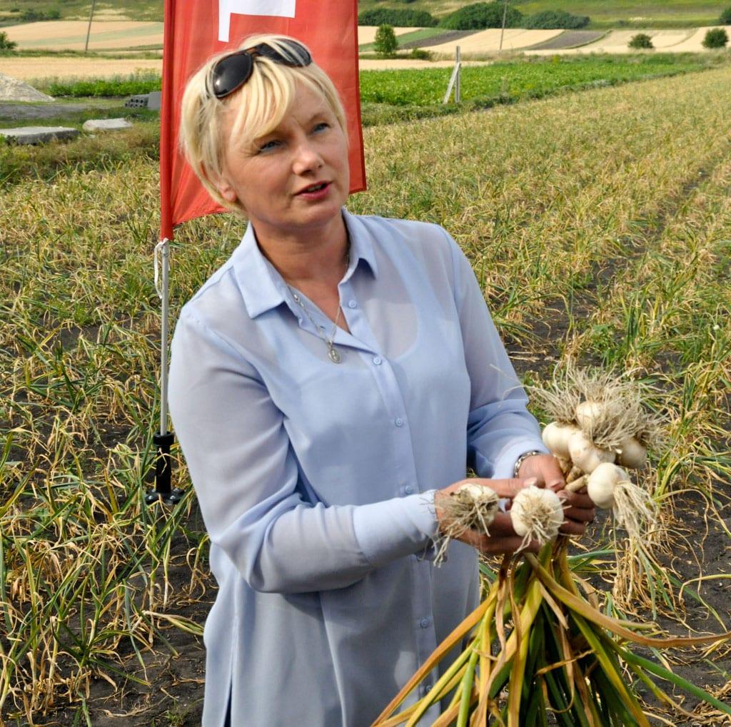 Magdalena Słowiak z KHiNO Polan prezentowała uprawiane w gospodarstwie odmiany czosnku z portfolio hodowcy. Harnaś to odmiana wczesna (właśnie trwają jej zbiory), najczęściej wybierana przez producentów. Wyróżnia się fioletową barwą łuski. Główki o masie do 80 g liczą od ośmiu do 13 ząbków. Arkus to odmiana dojrzewająca ok. 7 dni później niż Harnaś. Duże główki mają białofioletową łuskę i zawierają od pięciu do siedmiu ząbków. Ornak z kolei to odmiana o białej barwie łuski z fioletowymi żyłkami, dużych główkach (do 70 g) zawierających od czterech do ośmiu ząbków.