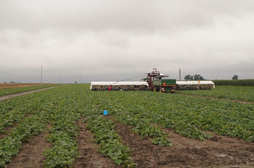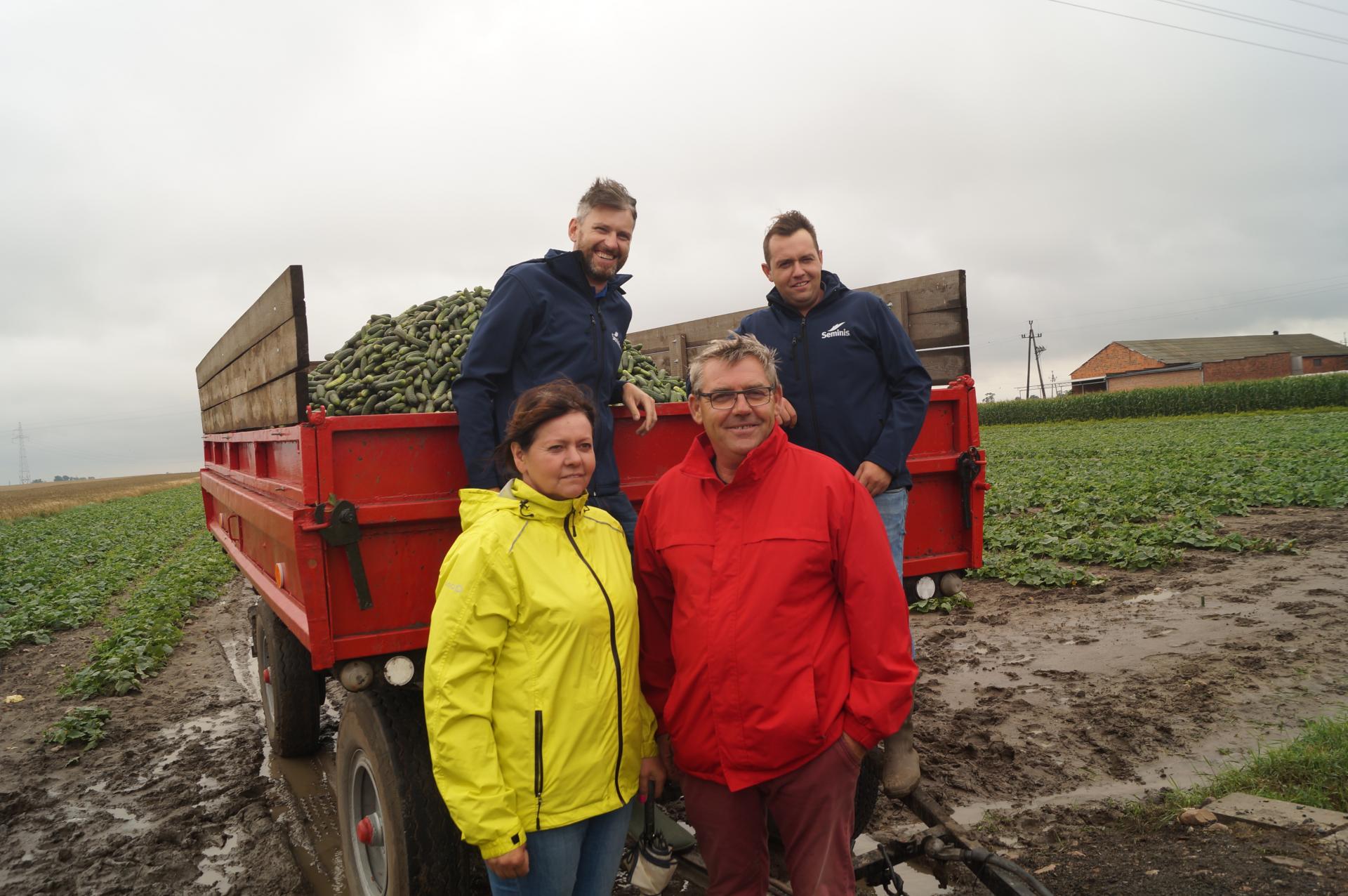Państwo Kąkol zajmują się uprawą ogórków polowych oraz prowadzą własną kwaszarnię w Czajkowie. W bieżącym sezonie wegetacyjnym zdecydowali się na uprawę odmiany partenokarpnej Monisia F1 na powierzchni 2,3 ha. Mariusz Kąkol reprezentujący firmę Monsanto szczegółowo omów bieżące warunki produkcyjne. − Nasiona odmiany Monisia F1 zostały wysiane bezpośrednio do gruntu 12 maja (37 tys. nasion/ha), z kolei pierwszy zbiór handlowy odbył się po 45 dniach (29, 30 czerwca) od wysiewu nasion. Aby usprawnić ogórkowe „żniwa” w gospodarstwie państwa Kąkol wykorzystywany jest tzw. samolotowy system zbioru. Zbiór ogórków odbywa się co dwa dni i trwa 6, 7 godzin. Na chwilę obecną cena ogórków w przemyśle przetwórczym waha się od 1,8 do 2 zł/kg. Skutkiem warunków atmosferycznych jakich doświadczamy w bieżącym sezonie jest przyspieszona wegetacja roślin o dwa tygodnie. Już końcem czerwca na plantacjach ogórków zaobserwowałem również wysoką presję wciornastka i zmiennika lucernowca.